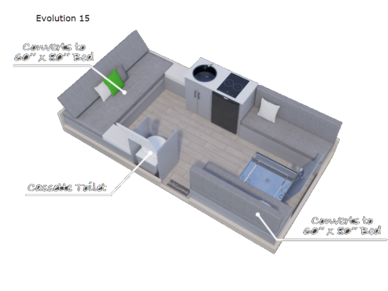 Sleeps 4 Length 18 ft Ext Width 7 ft Ext Height 5 ft 9 in Exterior Color Slate Gray Hitch Weight 240 lbs GVWR 3500 lbs Dry Weight 2400 lbs Fresh Water Capacity 35 gals Tire Size 15" Furnace BTU 18000 btu Available Beds Two Twin Refrigerator Type 12V Refrigerator Size 3.2 cu ft Axle Count 1 Shower Type Wet/Bath Shower Similar Floorplans