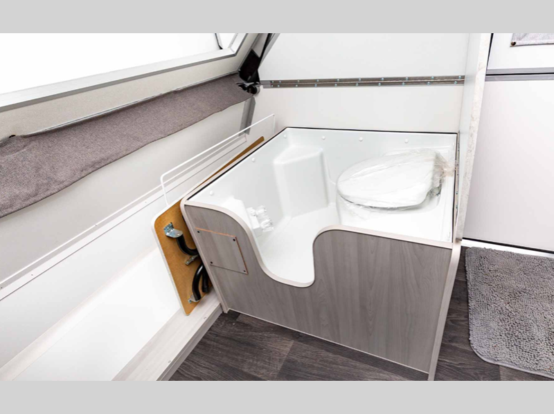 Aliner LXE A-frame camper Base Model highlights: Shower & Toilet Combo Rear Sofa ... more about LXE Base Model