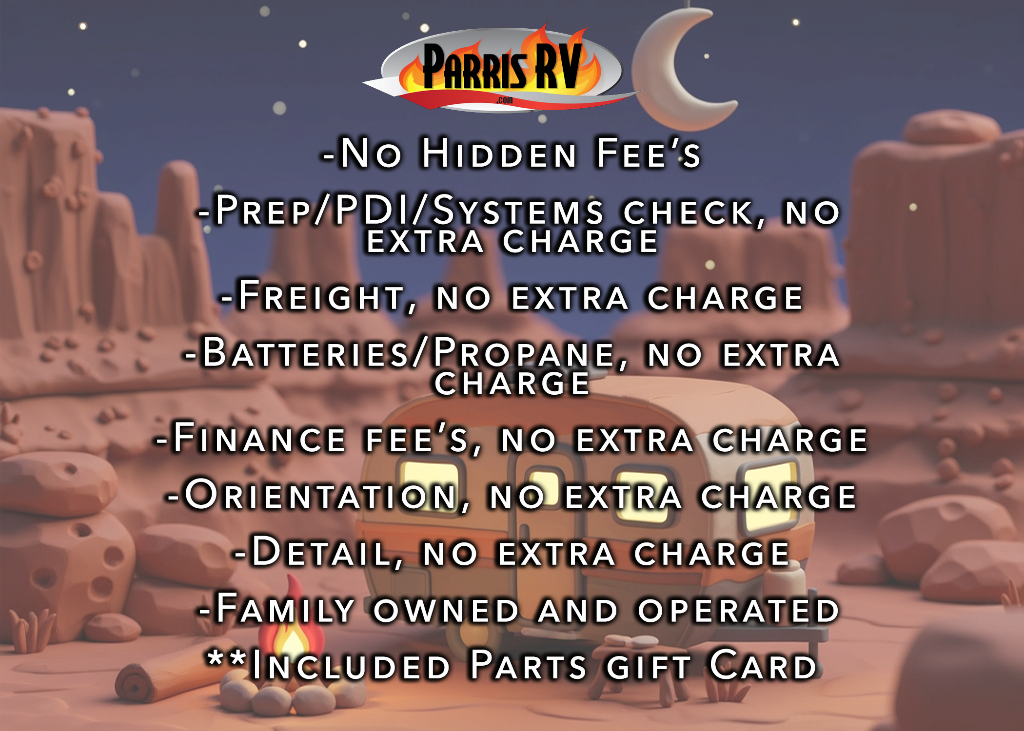 Parris RV is not responsible for any misprints, typos, or errors found in our website pages. Any price listed excludes sales tax, registration tags, and delivery fees. Manufacturer pictures, specifications, and features may be used in place of actual units on our lot. Please contact us @801-268-1110 for availability as our inventory changes rapidly. All calculated payments are an estimate only and do not constitute a commitment that financing or a specific interest rate or term is available.