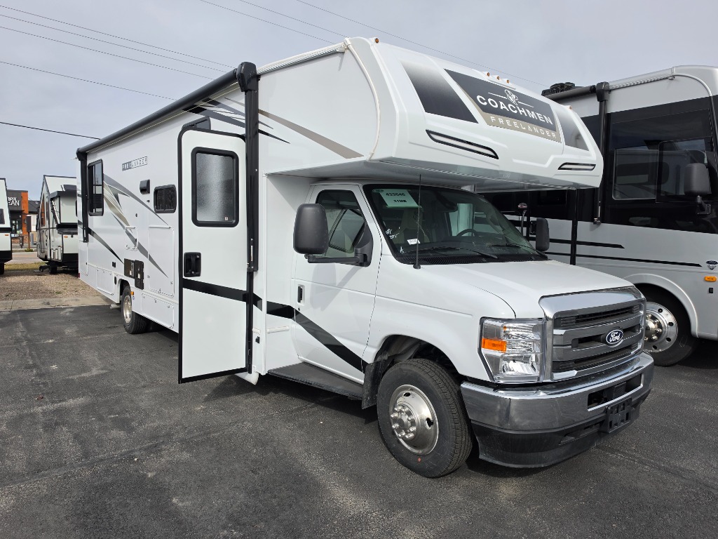 The Freelander Class C gas motorhome by Coachmen is a wonderful choice for anyone looking to get out on the road. A wide variety of floorplans and features offers something for everyone. The Azdel composite sidewalls and seamless one-piece roof membrane provide a solid structure to enjoy all your trips. Conveniences like storage above entrance door with an HDMI and charge station and reclining cockpit seats are standard, along with a rear color backup camera, a premium showerhead and faucet, and one-piece thermofoil countertops. The mandatory Explorer Package includes an exterior shower to rinse off before entering inside and an on-demand tankless water heater for hot water fast. Come find your favorite one today!