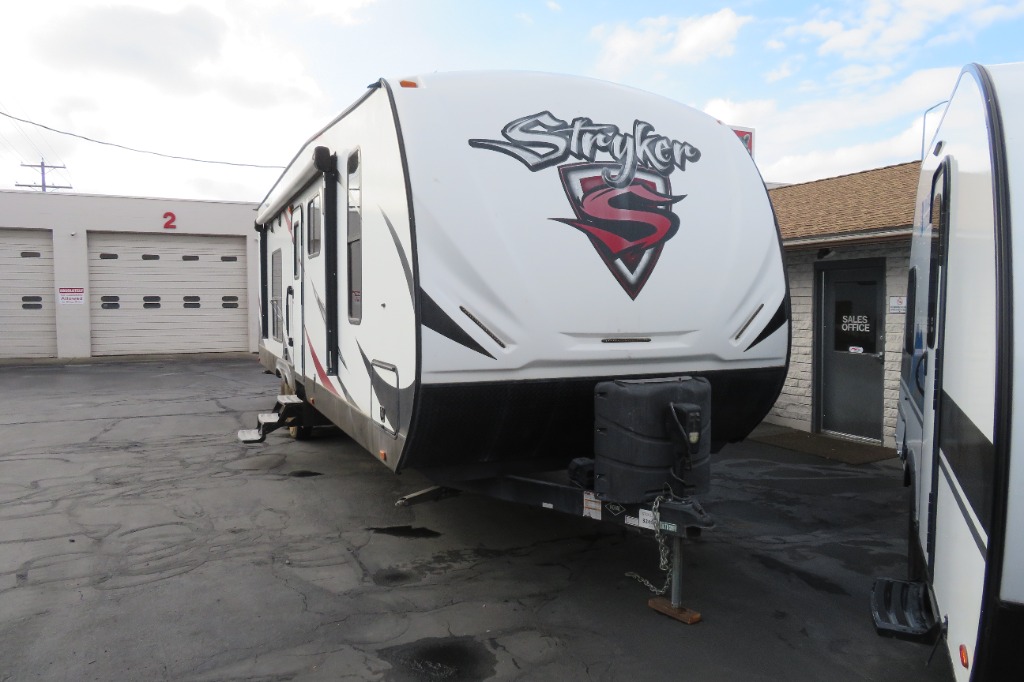 Each Stryker is constructed with Azdel composite laminated sidewalls, a painted molded fiberglass front cap, and 5/8" tongue and groove plywood flooring for durability. You will love the larger windows with blackout roller shades, and the premium sound system with an amplifier, subwoofer, and indoor/outdoor speakers to keep the party going. Some of the convenient outdoor features you will appreciate are the XL baggage doors, the power tongue and stabilizer jacks, the large power awning with LED lights, and much more!