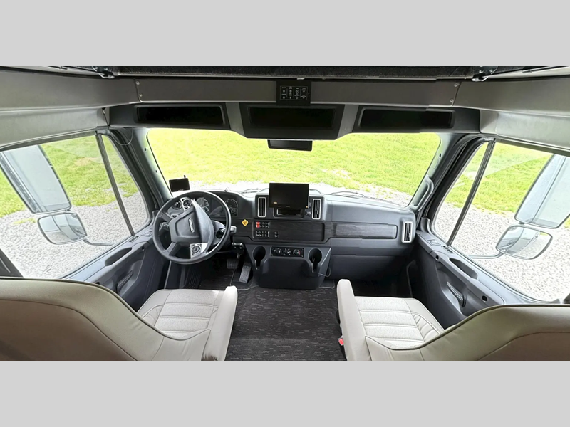 Sleeps 5 Slides 2 Length 33 ft 10 in Ext Width 8 ft 5 in Ext Height 12 ft 9 in Interior Color Driftwood II, Mindful Gray, Milano II, Saddle, Desert (Dealer Stock Only) Exterior Color Full Body Paint; Admiral Blue, Khaki, Quicksilver, Stone Ridge Hitch Weight 15000 lbs GVWR 33000 lbs Fresh Water Capacity 98 gals Grey Water Capacity 52 gals Black Water Capacity 52 gals Tire Size 275/80R 22.5 Furnace BTU 40000 btu Generator 8kW Onan Diesel Fuel Type Diesel Engine Cummins B6.7 Turbo Diesel Chassis Freightliner M2 106B Plus Horsepower 360 hp Fuel Capacity 100 gals Wheelbase 245 in Available Beds King Torque 800 ft-lb Refrigerator Type Residential w/Ice Maker Refrigerator Size 16 cu ft Convection Cooking Yes Cooktop Burners 3 Number of Awnings 1 Axle Weight Front 12000 lbs Axle Weight Rear 21000 lbs LP Tank Capacity 20.3 gals Water Heater Type On Demand LP AC BTU 30000 btu TV Info LR LED Smart TV, BR 32" LED Smart TV, Ext. 32" LED Smart TV Awning Info 16' Armless w/LED Lighting and Motion Activated Retraction Washer/Dryer Available Yes Gross Combined Weight 46000 lbs Shower Type Standard Electrical Service 50 amp Solar Wattage 200 watts Similar Floorplans