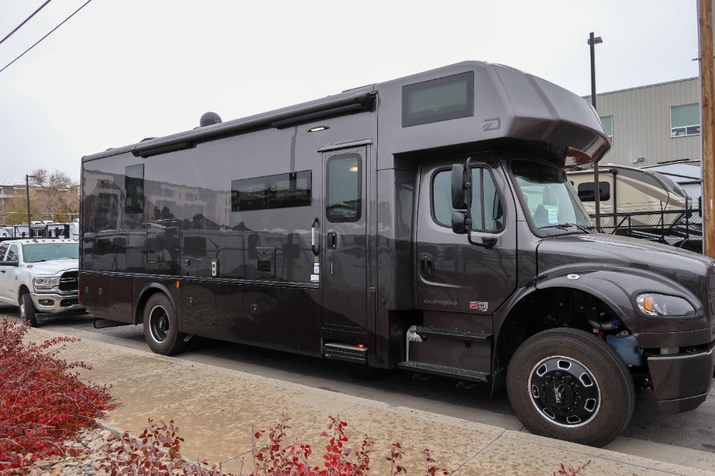 The Europa Super C diesel motorhome by Dynamax is coming to you with all the power, durability, and luxury you need for your adventurous lifestyle. You will love the solid surface countertop with LED edge lighting in the kitchen, the premium vinyl flooring throughout, and the clean, contemporary styling. The on-demand water heater is a luxury you won't want to travel without, and the multiplex wiring with a touch screen command center includes switch panels, and Bluetooth Smart Phone app control for ease of use. There are dual 12V 8D AGM deep-cycle maintenance-free house batteries and a single 200-watt solar panel to go off-grid if you choose, and the 12,000 lb. trailer hitch will allow you to bring along the off-road toys. Some of the exterior features that make this coach great are the armless patio awning with LED lighting, the automatic four-point hydraulic leveling jacks, and the eye-catching custom full-body paint package!