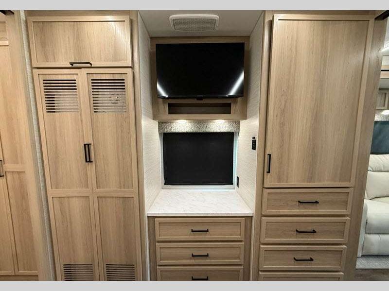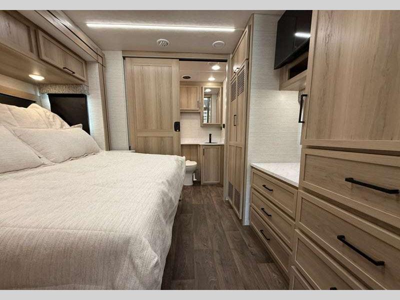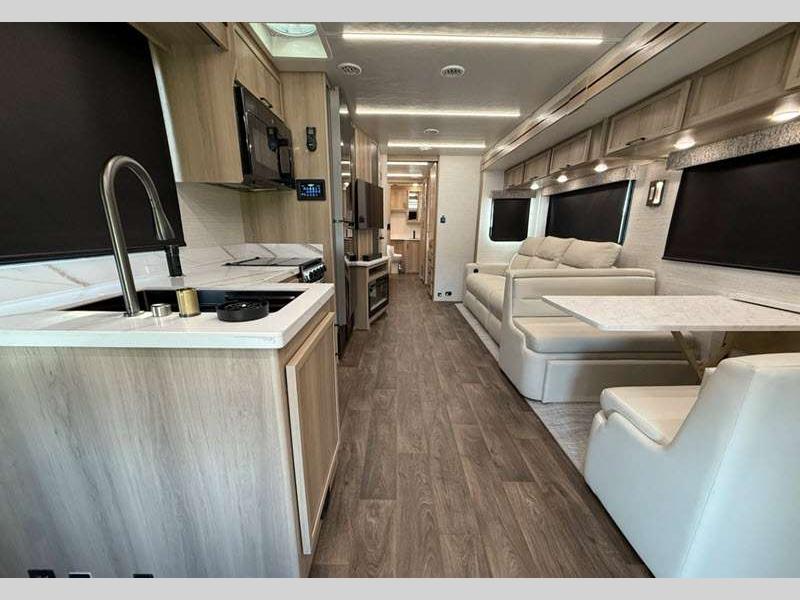 Built on the rock-solid Freightliner S2RV PLUS chassis and powered by a Cummins 6.7L turbo diesel, this Super C diesel motorhome blends commercial-grade strength with refined luxury. A fully laminated, aluminum-framed structure, full-body paint, and premium exterior amenities set the stage for confident travel, while air suspension, exhaust braking, and advanced safety systems deliver a smooth, controlled ride. Inside, residential comforts shine with upscale furnishings, smart storage, solid-surface finishes, and cutting-edge tech throughout. From off-grid capability with solar, inverter, and diesel generator to a spa-inspired bath and gourmet kitchen, every detail is designed for long-haul comfort, durability, and total freedom on the road.