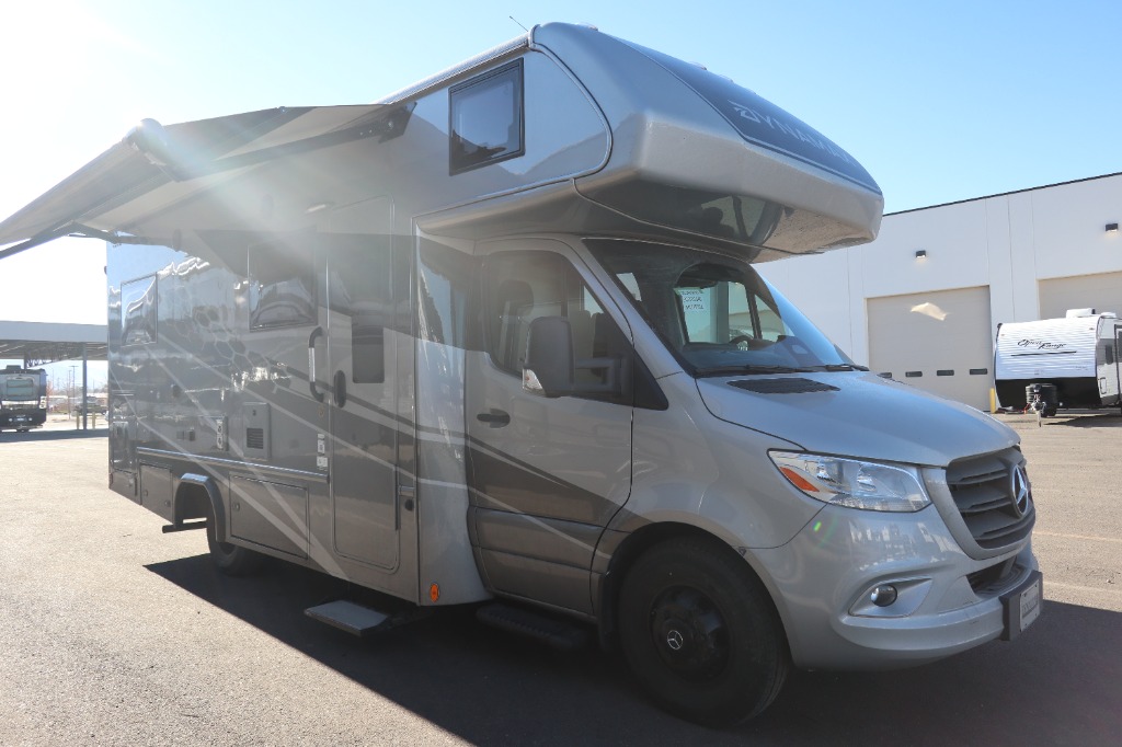 Sleeps 3 Slides 2 Length 24 ft 7 in Ext Width 7 ft 10 in Ext Height 11 ft 5 in Int Height 6 ft 9 in Interior Color Saddle, Milano II Exterior Color Full Body Paint; Magnetic, Varesine Blue, Titanium Hitch Weight 5000 lbs GVWR 11030 lbs Fresh Water Capacity 35 gals Grey Water Capacity 32 gals Black Water Capacity 32 gals Tire Size 16" Furnace BTU 20000 btu Generator Flex Power™ 4000i LP Fuel Type Diesel Engine 2.0L I-4 Chassis Mercedes Benz Sprinter Horsepower 208 hp Wheelbase 170 in Available Beds Queen Torque 332 ft-lb Refrigerator Type 12V Two Door Compressor Driven Refrigerator Size 8 cu ft Convection Cooking Yes Cooktop Burners 3 Number of Awnings 1 Axle Weight Front 4410 lbs Axle Weight Rear 7720 lbs LP Tank Capacity 20.3 gals Water Heater Type Truma Aqua Go Comfort Plus On Demand AC BTU 15000 btu TV Info LR 32" LED Smart TV, BR 32" LED Smart TV Awning Info 16' Armless w/LED Lighting and Motion Activated Retraction Gross Combined Weight 15250 lbs Shower Type Standard Electrical Service 30 amp Similar Motor Home Class C - Diesel Floorplans
