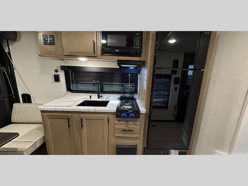 Sleeps 5 Length 22 ft 8 in Ext Width 7 ft 6 in Ext Height 10 ft 6 in Hitch Weight 655 lbs GVWR 5755 lbs Dry Weight 3879 lbs Cargo Capacity 1876 lbs Fresh Water Capacity 26 gals Grey Water Capacity 23 gals Black Water Capacity 28 gals Number Of Bunks 1 Available Beds Queen Number of Awnings 1 Garage Size 13 ft 11 in Awning Info 12' Axle Count 1 Shower Type Tub/Shower Combo Similar Floorplans