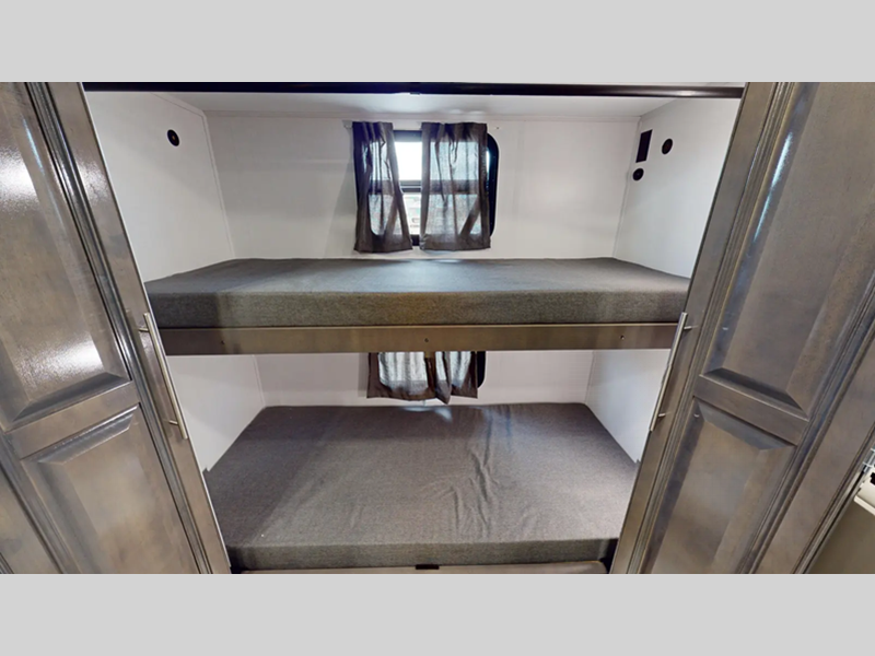 Sleeps 8 Slides 2 Length 39 ft 7 in Ext Width 8 ft 4 in Ext Height 12 ft 10 in Int Height 6 ft 10 in Exterior Color Carolina, Indigo, Poppy, Titanium Hitch Weight 5000 lbs GVWR 24000 lbs Fresh Water Capacity 73 gals Grey Water Capacity 52 gals Black Water Capacity 52 gals Furnace BTU 35000 btu Generator 6,000W Yamaha Fuel Type Gas Engine 7.3L V8 Chassis Ford F53 Horsepower 350 hp Fuel Capacity 80 gals Wheelbase 252 in Number Of Bunks 3 Available Beds King Torque 468 ft-lb Refrigerator Type Stainless Steel 3 Door Residential Refrigerator Size 18 cu ft Cooktop Burners 3 Number of Awnings 1 Axle Weight Front 9000 lbs Axle Weight Rear 15500 lbs LP Tank Capacity 24.5 Gal Water Heater Capacity 6 gal AC BTU 15000 btu TV Info LR 40" LED TV, BR 32" LED TV, Exterior 40" LED TV Awning Info 18' Encased Power Patio Awning w/LED Light Gross Combined Weight 30000 lbs Shower Type Shower w/Seat Electrical Service 50 amp Similar Floorplans