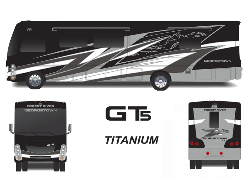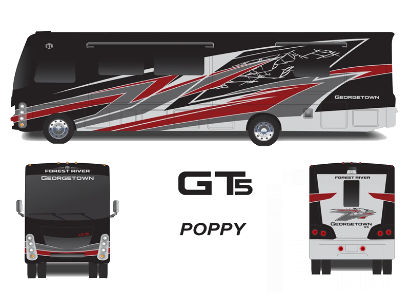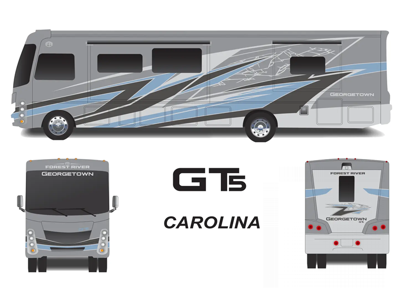 The Forest River Georgetown 5 Series Class A gas motorhomes are packed with interior luxuries for enjoyable moments on the road. Standard appointments include solid surface countertops, LED TVs in the bedroom and living area, plus a Fire Fly operation system with the mobile app for easy access to your coaches' functions.