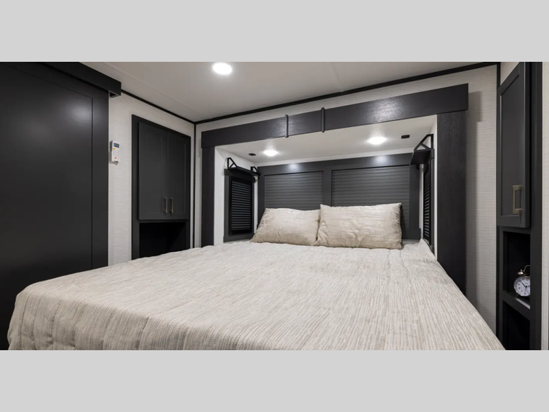 Sleeps 6 Slides 2 Length 37 ft 8 in Ext Width 8 ft 6 in Ext Height 13 ft 4 in Hitch Weight 2506 lbs GVWR 14999 lbs Dry Weight 10986 lbs Cargo Capacity 4013 lbs Fresh Water Capacity 140 gals Grey Water Capacity 65 gals Black Water Capacity 40 gals Generator 4.5k NPS Fuel Capacity 40 gals Number Of Bunks 1 Available Beds King Refrigerator Type 12V Convection Cooking Yes Number of Awnings 1 Garage Size 19 ft 7 in LP Tank Capacity 20 lbs Water Heater Type Tankless AC BTU 15000 btu TV Info LR Smart TV Axle Count 2 Number of LP Tanks 2 Shower Type Radius Similar Floorplans