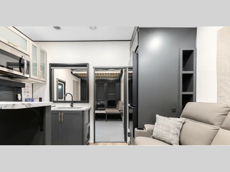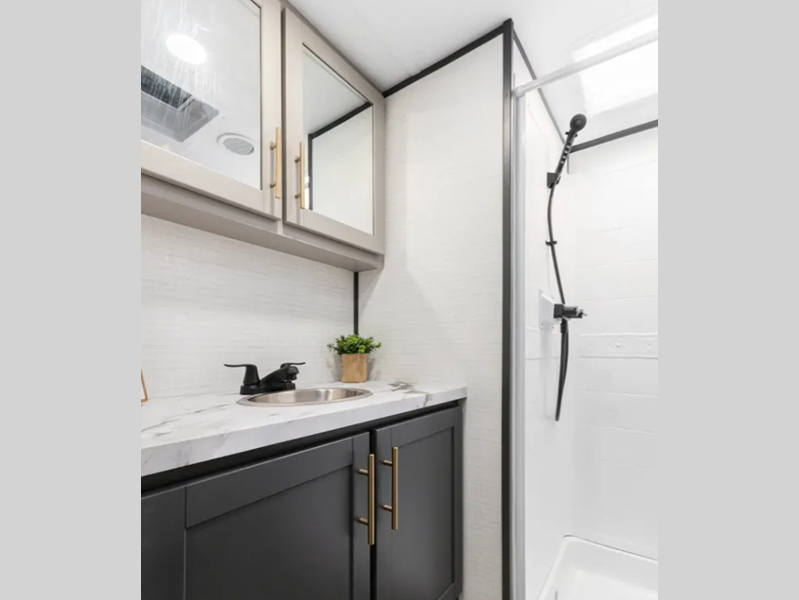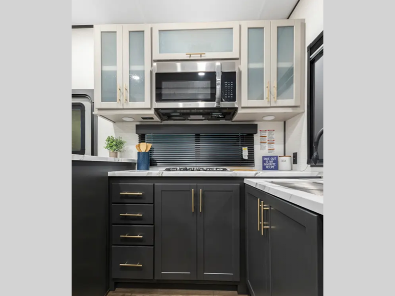 There is fiberglass flooring insulation that will withstand your many adventures plus a rear beaver tail frame for easy unloading and an external fuel cell with a pump. You will feel right at home with decorative glass cabinet doors and LED lights, and there is a tankless water heater to provide endless hot showers after trail riding. The Alumifoil insulated enclosed underbelly will help extend your camping season, and each model is back up camera ready if you want to make parking easier than ever.