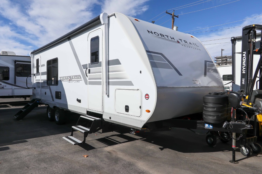 The North Trail Ultra-Lite travel trailers are a favorite Heartland brand, and it's easy to see why! These spacious models are built tough with 2" Vacuum bonded laminated sidewalls with interior and exterior OnBoard Composite on interior and exterior, Exclusive TrussXL Roof System, and front diamond plating.