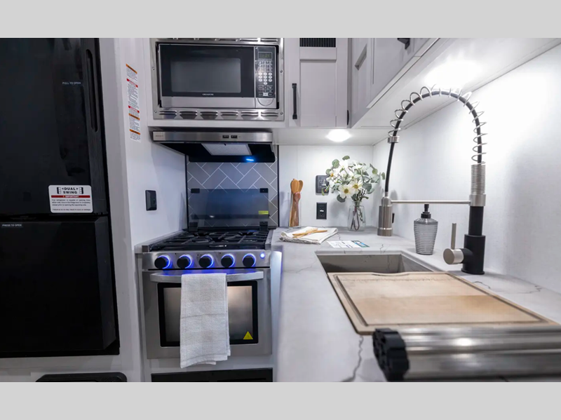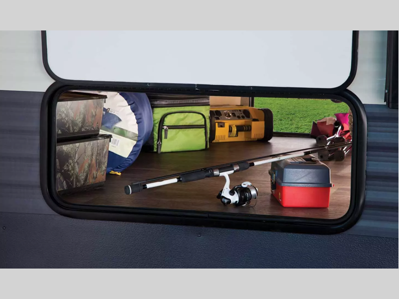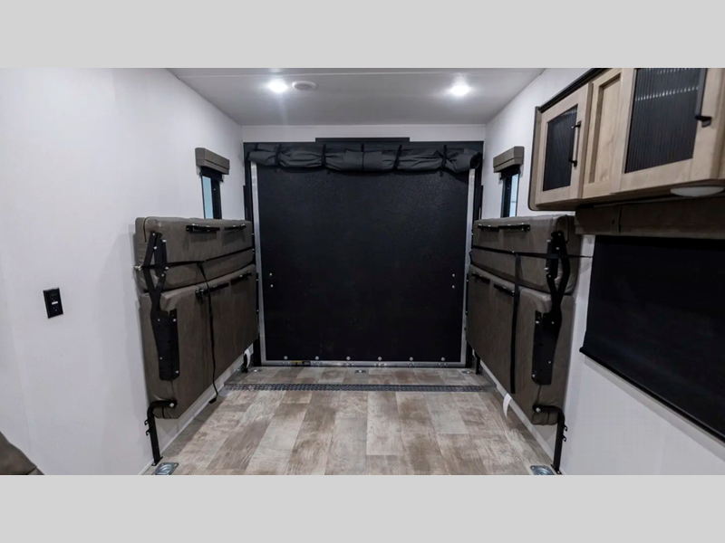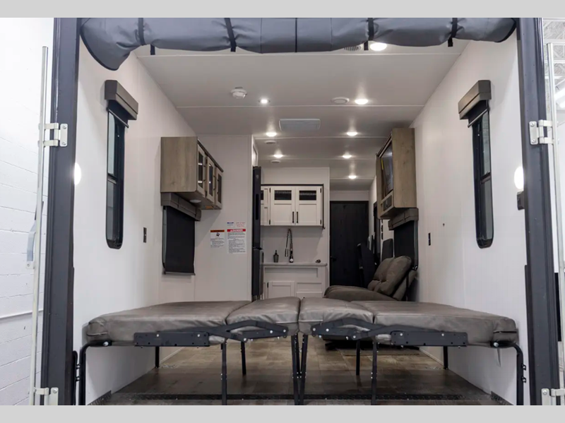 Each model is designed to make you feel at home when you're not out riding the trails. Enjoy scenic views and protection from the elements with tinted windows, while super lube axles ensure smooth towing. For added stability, our toy hauler travel trailers features front and rear stab jacks. Inside, indulge in premium entertainment with our AM/FM/Bluetooth stereo, unwind with peaceful nights courtesy of our night roller shades, and enjoy of many more incredible features!