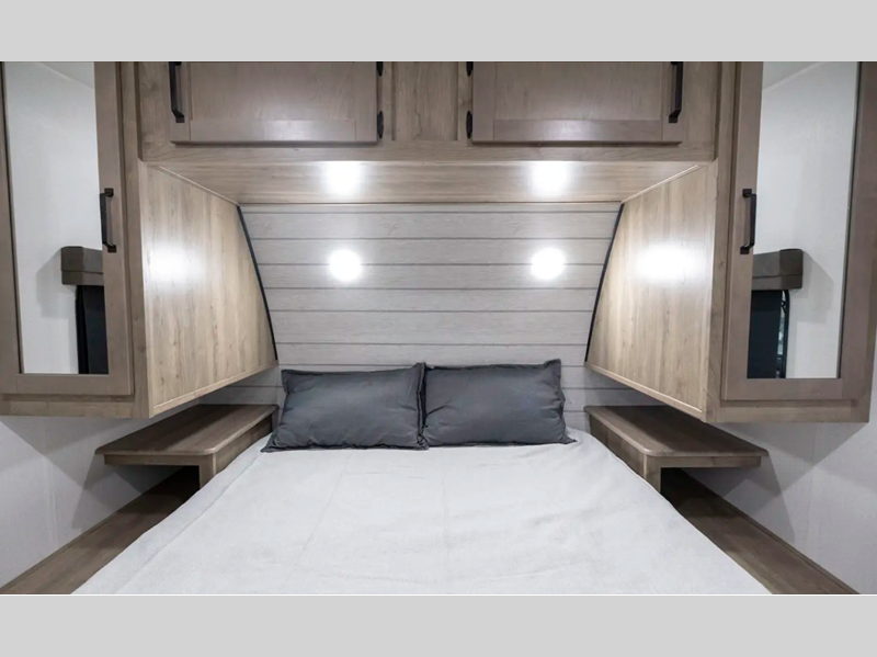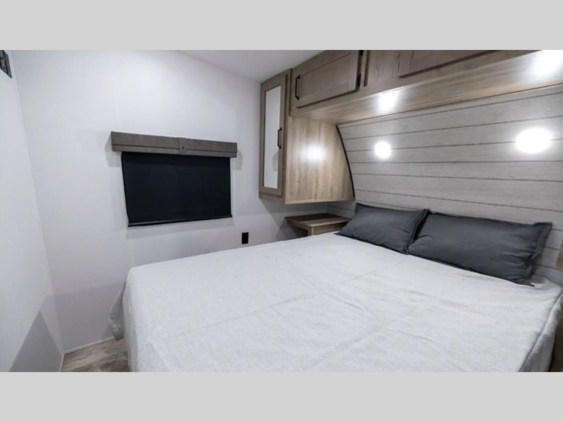 Sleeps 4 Length 29 ft 9 in Ext Width 8 ft Ext Height 12 ft 2 in Hitch Weight 845 lbs GVWR 8873 lbs Dry Weight 6173 lbs Cargo Capacity 2700 lbs Fresh Water Capacity 43 gals Grey Water Capacity 35 gals Black Water Capacity 35 gals Available Beds RV Queen Refrigerator Type 12V Black Glass Refrigerator Size 11 cu ft Shower Size 40" Number of Awnings 1 Garage Size 11 ft Water Heater Capacity 6 gal Water Heater Type Gas/Electric AC BTU 13500 btu Awning Info 17' Electric with LED Light Strip Axle Count 2 Shower Type Tub/Shower Combo Similar Floorplans