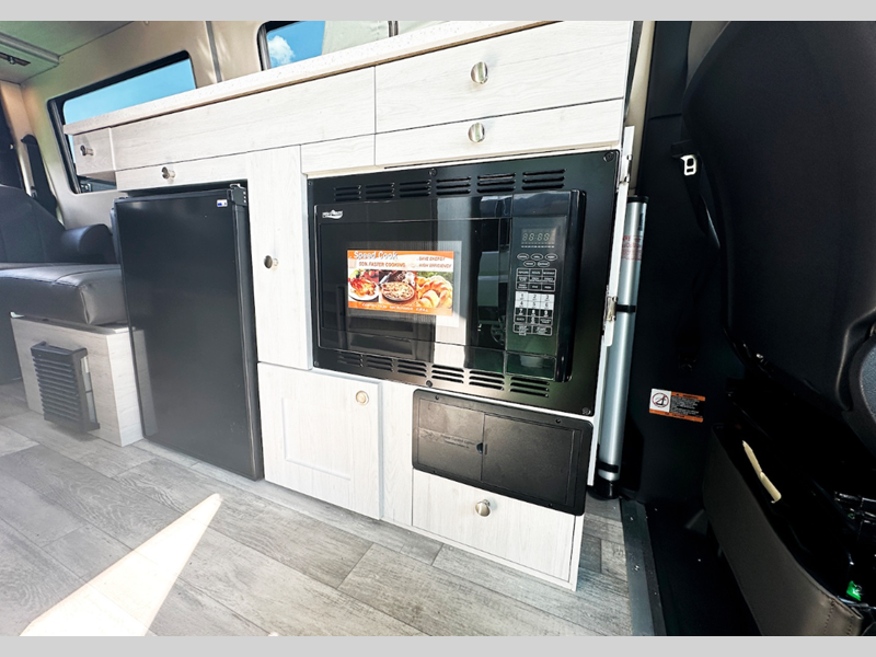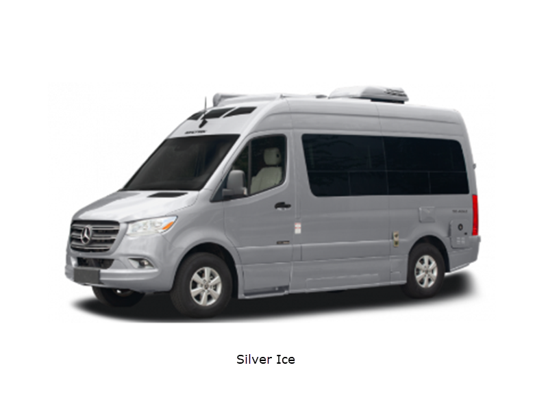 Sleeps 2 Length 19 ft 5 in Ext Width 6 ft 8 in Ext Height 9 ft 7 in Int Height 6 ft 3 in Exterior Color Grey White, Silver Ice, Selenite Grey Hitch Weight 5000 lbs GVWR 9050 lbs Cargo Capacity 1500 lbs Fresh Water Capacity 30 gals Grey Water Capacity 20 gals Black Water Capacity 10 gals Tire Size LT245/75R16E Black Wall Furnace BTU 16000 btu Generator 360W Fuel Type Diesel Engine 3.0L CRD V6 Blue Tec Chassis Mercedes Short Sprinter Horsepower 190 hp Wheelbase 144 in Torque 325 ft-lb Refrigerator Type 12V/110V Refrigerator Size 3.1 cu ft Convection Cooking Yes Cooktop Burners 2 Number of Awnings 1 LP Tank Capacity 16 gals Water Heater Type Tankless 42K BTU AC BTU 11000 btu TV Info Coach 24" Smart TV Awning Info 10' Power Gross Combined Weight 13550 lbs Shower Type Wet/Bath Shower Electrical Service 30 amp Solar Wattage 300 watts