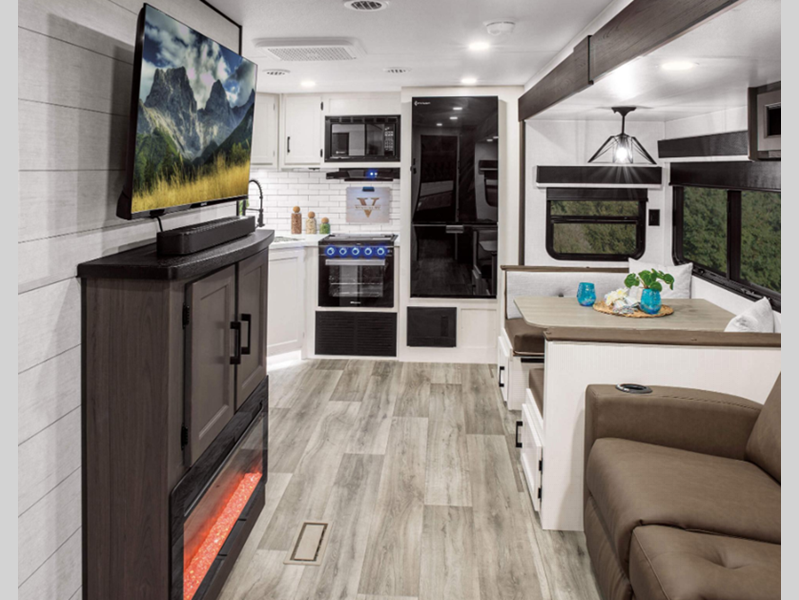 Sleeps 5 Slides 2 Length 31 ft 6 in Ext Width 8 ft Ext Height 11 ft 4 in Int Height 6 ft 10 in Interior Color Blake, Doe Hitch Weight 880 lbs GVWR 9265 lbs Dry Weight 7520 lbs Cargo Capacity 1745 lbs Fresh Water Capacity 45 gals Grey Water Capacity 64 gals Black Water Capacity 32 gals Tire Size 15" Furnace BTU 30000 btu Available Beds King Refrigerator Type 12V Refrigerator Size 10 cu ft Cooktop Burners 3 Shower Size 30" x 36" Number of Awnings 1 Axle Weight 6640 lbs LP Tank Capacity 30 lbs Water Heater Type On Demand Tankless AC BTU 15000 btu Cargo Deck Size 0 ft TV Info LR 40" Smart TV, BR TV Awning Info 16' Power w/ LED Lights Axle Count 2 Number of LP Tanks 2 Shower Type Standard Electrical Service 50 amp Similar Floorplans