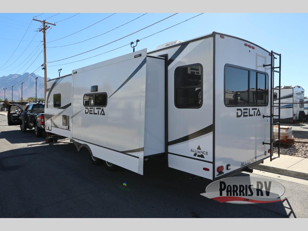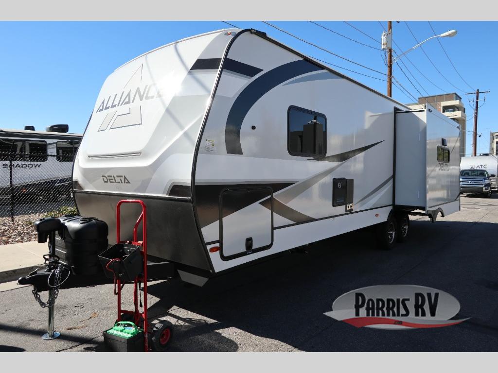 Form and function works together with everyone of these Alliance RV Delta travel trailers! They are built with a walk-on roof with a seamless PVC roof covering, Mylar reinforced exterior seals, and a heated and enclosed underbelly to protect your unit in all seasons. The commercial grade vinyl flooring will be easy to clean and the oversized atrium windows throughout let in plenty of natural sunlight. With 62 cu. ft. of drop frame pass-through storage, you can bring along all of your essential camping gear plus it has USB charging for more convenience. There are many at home interior conveniences including a Bluetooth speaker, USB charging throughout, and even a pull-out kitchen trash can. Come find your favorite model today!
