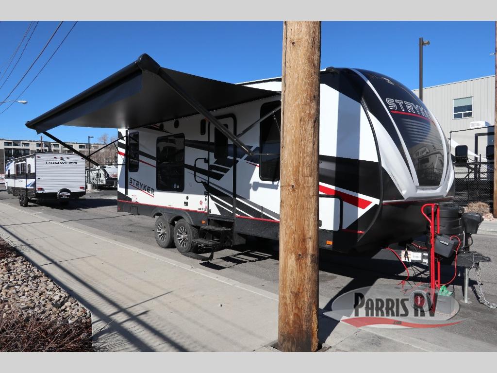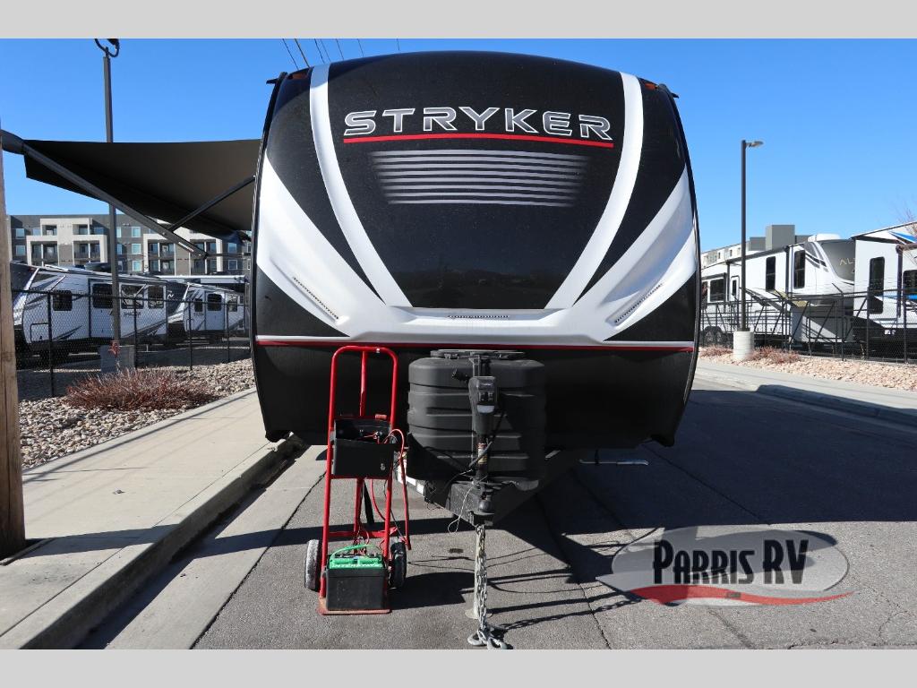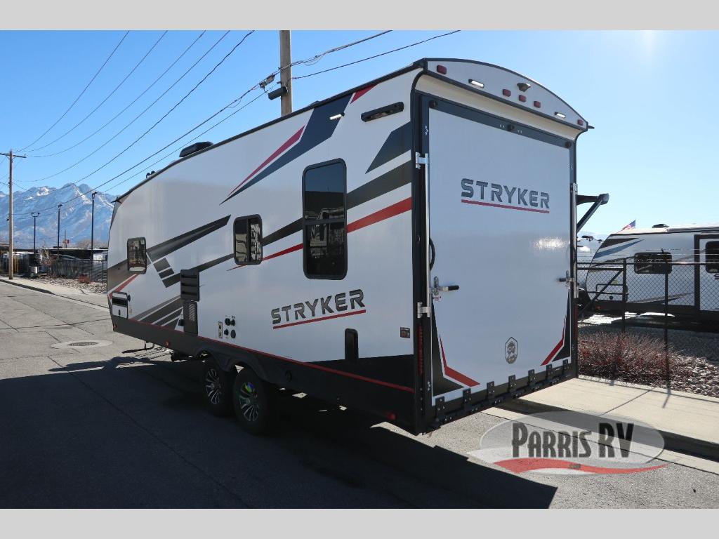 Each Stryker toy hauler travel trailer by Cruiser starts with a powder coated structural steel I-beam frame, Azdel composite laminated sidewalls, and a 102" wide body, perfect for your side-by-side, dirt bikes, or kayaks! The EZ flex rubberized suspension provides smooth towing on tougher roads, and the painted molded fiberglass front cap not only looks sleek, but provides better protection. Inside, you'll find barreled ceilings up to 98" in height, hardwood cabinet doors, solid surface kitchen cabinets, and numerous USB ports and 110V outlets. The removable carpet in the garage will create an open concept you are sure to love, and the industry-first pet palace under the bed will allow you to bring your loyal furry friends along. There's so much more to love about the Stryker toy haulers, like the premium sound system, the large windows, tons of storage space, and the list goes on!
