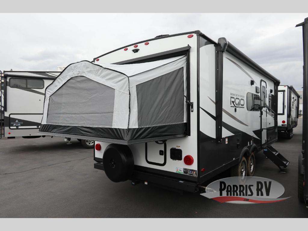 With any Rockwood Roo expandable travel trailer by Forest River you will enjoy smooth towing thanks to the torsion axle, Rubber-Ryde suspension, the easy lube axles and Nev-R-Adjust brakes. The key-Alike locks provide easy access in and out of your trailer, and each model includes prep for a Air 360+Omnidirectional antenna with WiFi for all your connection needs. Each model is constructed with a vacuum laminated one-piece roof and walls, an enclosed underbelly, and frameless windows for a more sleek look. You will enjoy many interior comforts, including hardwood cabinet doors and drawer fronts, night roller shades, a bunk/fan light combo with each bed, and much more!