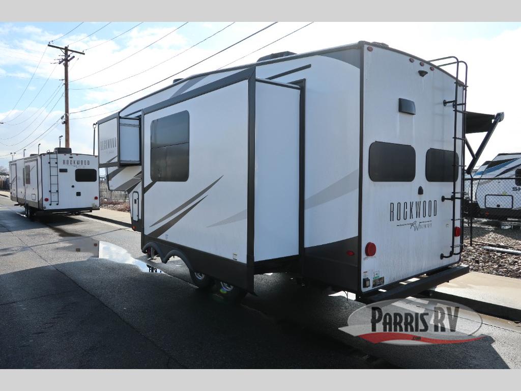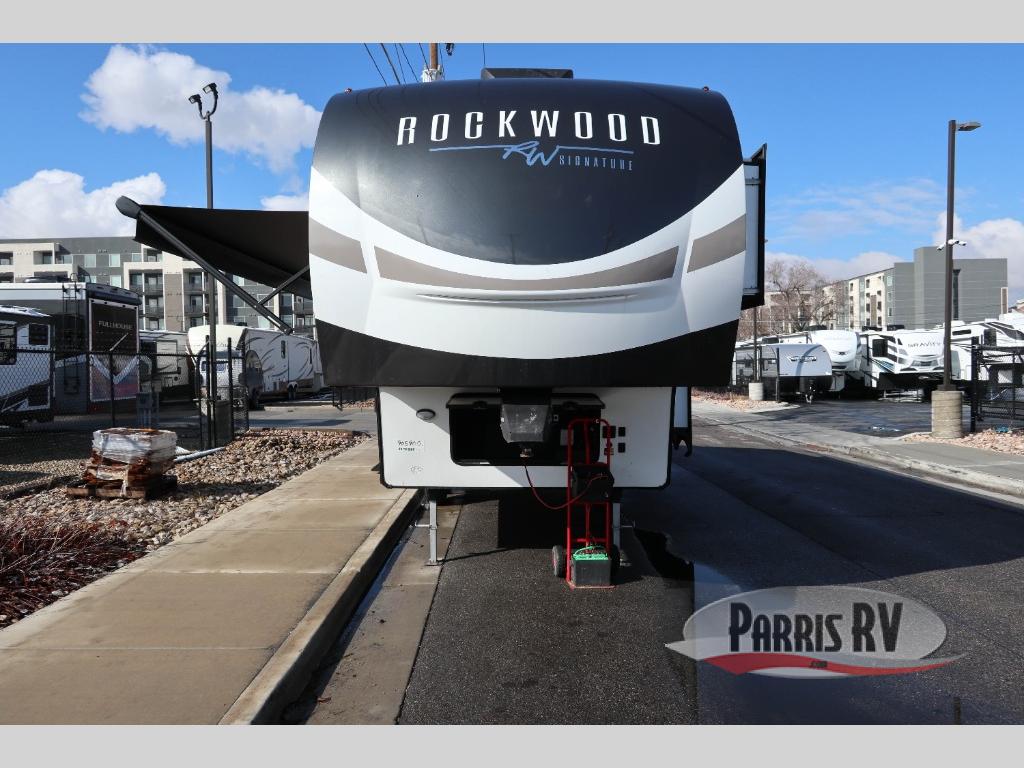 With any Rockwood Signature fifth wheel or travel trailer by Forest River RV, you will enjoy superior construction that includes laminated white fiberglass sidewalls, a radius roof with vaulted interior ceilings, plus radiant foil insulation and an enclosed underbelly for use in all types of weather. Some convenient exterior features include a power tongue jack, a torsion axle, Rubber-Ryde suspension, and a tire pressure monitor system with a monitor for added safety. The interior offers a One Touch OneControl panel with WeRV app control, for lights, awning, slides, water heater and more, and the Air 360+ omnidirectional antenna with WiFi prep lets you work while away from home if needed. You will also appreciate the interior vaulted ceilings, residential soft close doors and drawers, solid surface kitchen countertops, and designer kitchen backsplash!