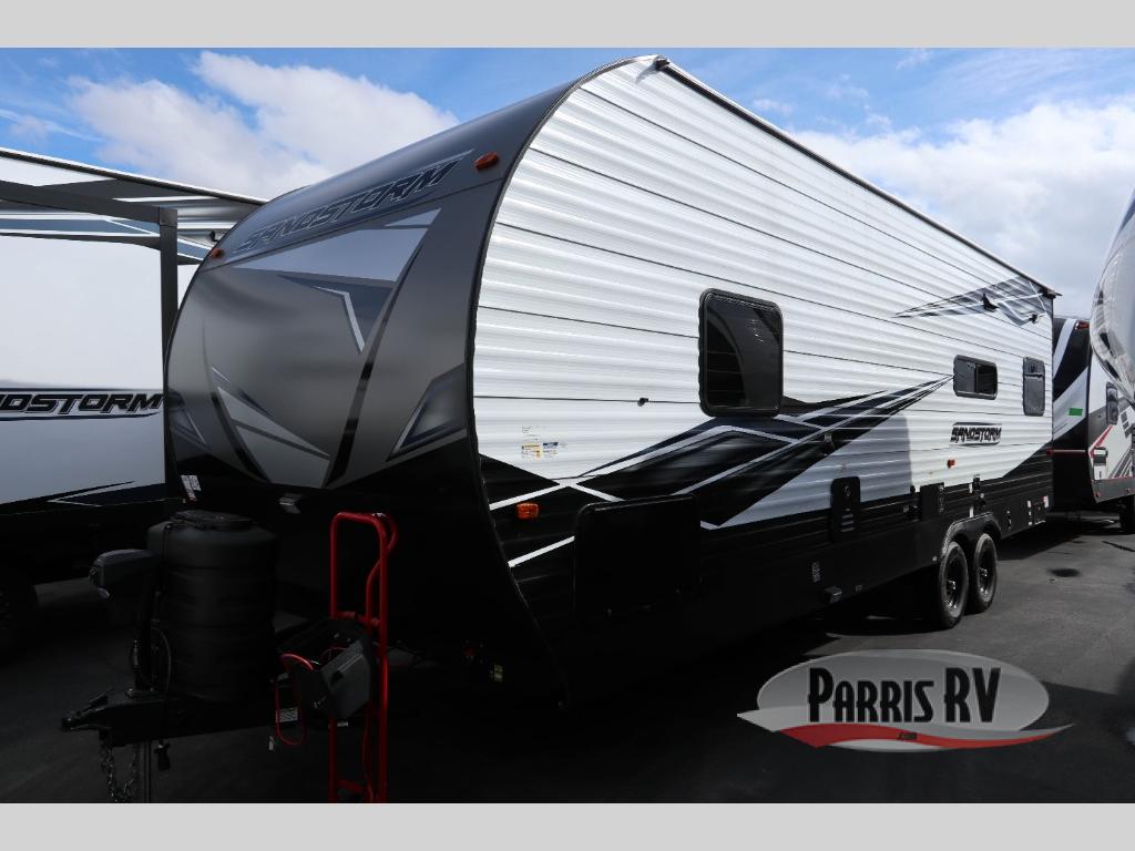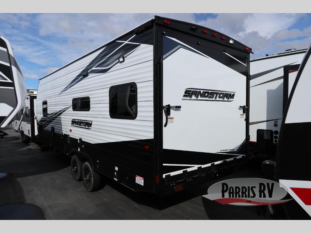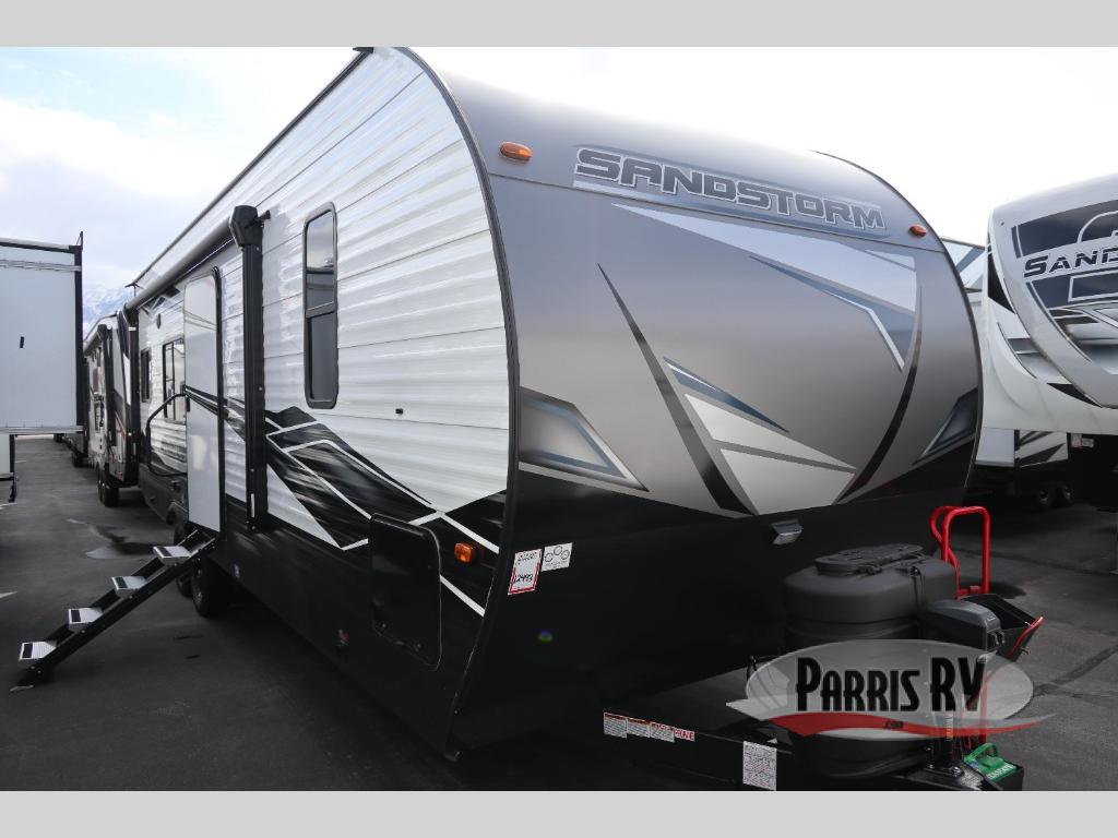 The Sandstorm toy haulers by Forest River let you take your adventures up a notch! There are four different build levels to choose from to best fit your needs, budget, and style. Each travel trailer and fifth wheel include flipped axles with no interior drive on wheel wells, Solid Step entry steps, and tie-downs mounted to steel throughout to keep toys secure on the way to the campground. The power tongue jack will make it easier than ever to hitch up and go, and the Lippert ladder prep means you can add this option to easily access the roof. A 40 gallon fuel station comes standard to keep your toys ready to go when you are, and the dual 20 lbs. propane tanks will let you hook up the grill to make dinner for your whole crew. Some of the other convenient features include a matching spare tire if an unfortunate flat happens, a 335W solar panel, and a 1.5 cu. ft. convection microwave. And don't forget about the available options that will allow you to customize your toy hauler exactly how you want it!