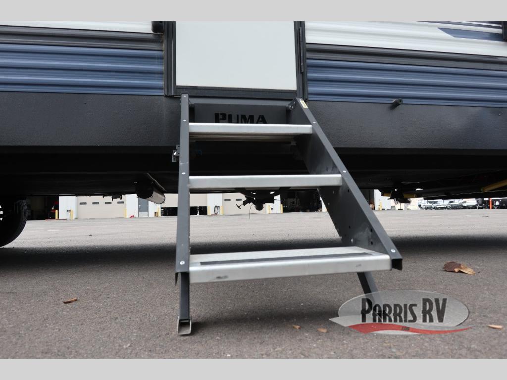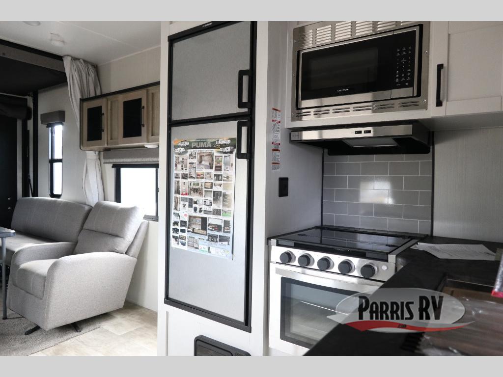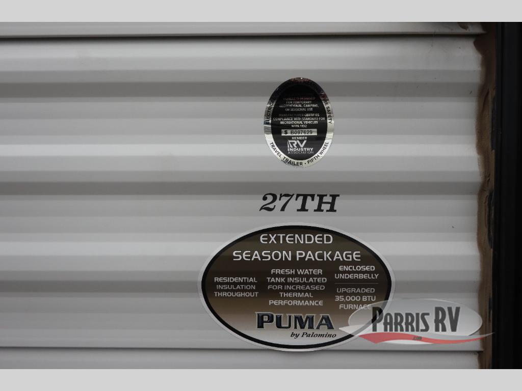 Each Puma Unleased toy hauler fifth wheel and travel trailer by Palomino is constructed with an enclosed underbelly, powder coated frames, and an AlphaPly roofing membrane for added strength and durability. The Electric Power Package includes two power front jacks and two stabilizer jacks for hassle-free set up, and you can choose the optional XL Edition Package for even more convenient features. Some of the at-home comforts you'll enjoy are the designer window treatments, the Beauflor linoleum flooring, and the 80" interior height. These toy haulers also include USB ports to keep your devices charged, an AM/FM/Bluetooth stereo, plus a King antenna with Wi-Fi prep if you need to get some work done on the weekends.