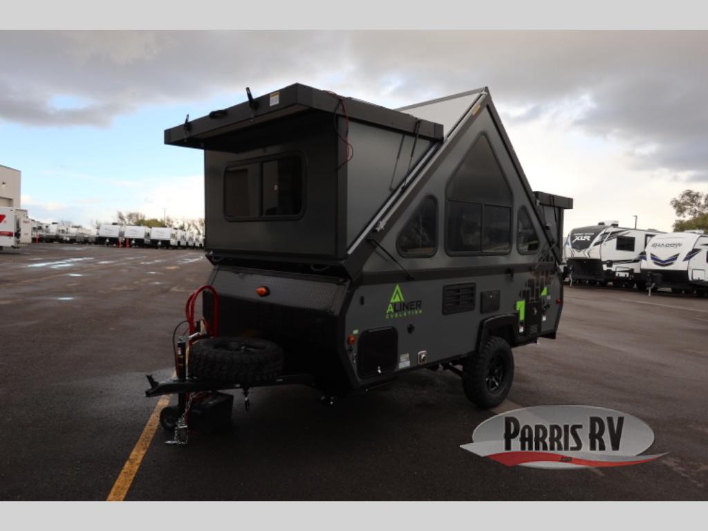 The Evolution A-frame camper by Aliner is coming to you with residential features and solid construction materials. You'll love the slate gray exterior, and the Azdel composite panels included help prolong the life of your camper. There are 15" off-road tires with graphics package, LED running lights, exterior baggage doors, plus many more exterior conveniences. The Evolution A-Frame camper comes with commercial grade, raised coin polyvinyl flooring, SIMONA BOATBOARD interior cabinets and furniture, and three indoor electrical outlets to name a few interior comforts.