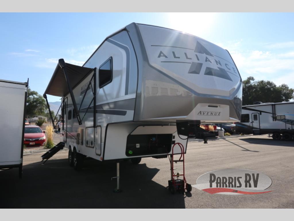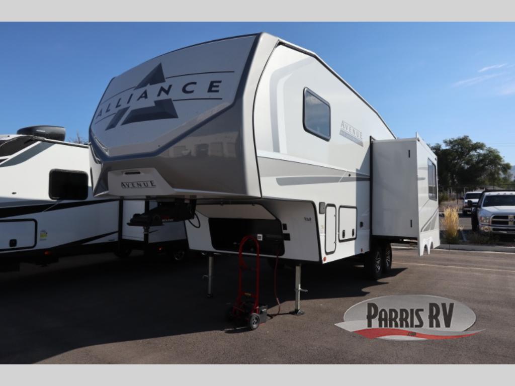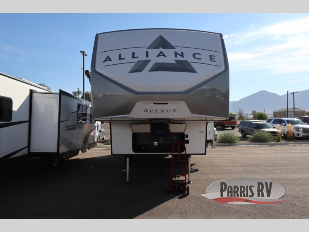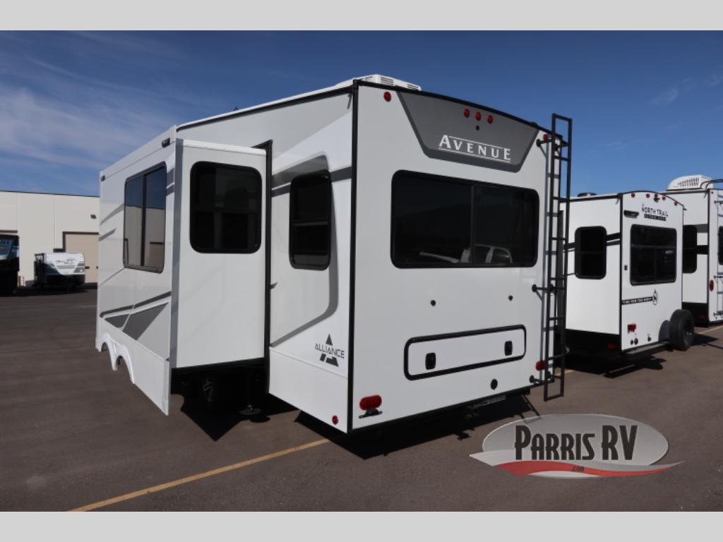 A benchmark chassis creates a space saver upper deck with each one of these Avenue All-Access fifth wheels by Alliance RV! The 101 in. wide-body construction gives you more room to walk around and the flush slide out floors throughout prevent any tripping. There are Azdel composite sidewalls inside and out, and a seamless fully walkable PVC roof for extreme durability and zero maintenance. You are sure to love the "no carpet zone" making each Avenue easy to clean and allergen free, not to mention pet friendly with vinyl flooring throughout. You can maximize your space throughout with innovative storage solutions like the hidden storage behind the TV, inside the end tables, ottoman, and dinette chairs. There are a few available options you might like to add to further customize your fifth wheel, like the optional second 13.5K A/C or the optional Solar Package for off-grid camping capabilities!