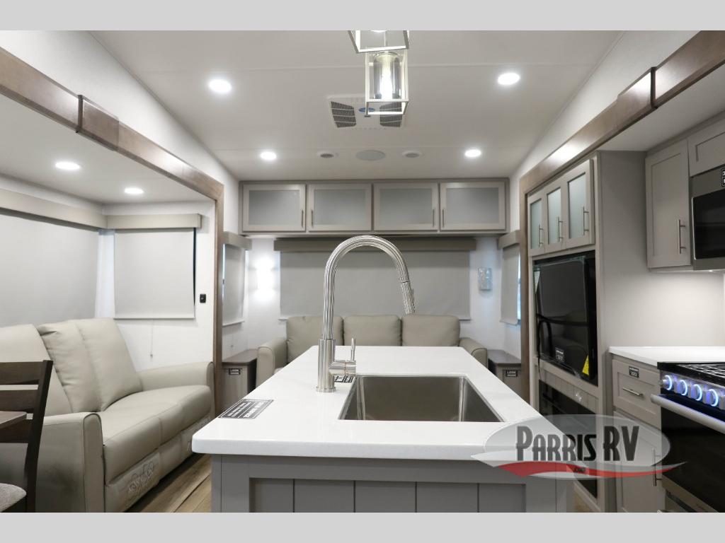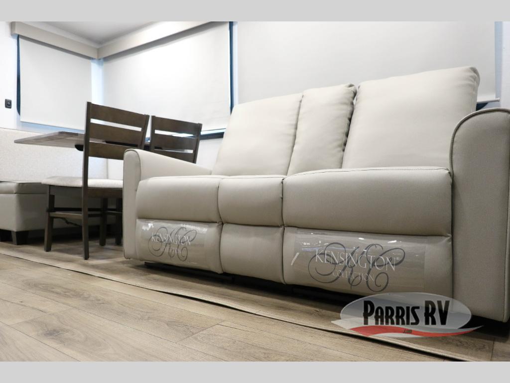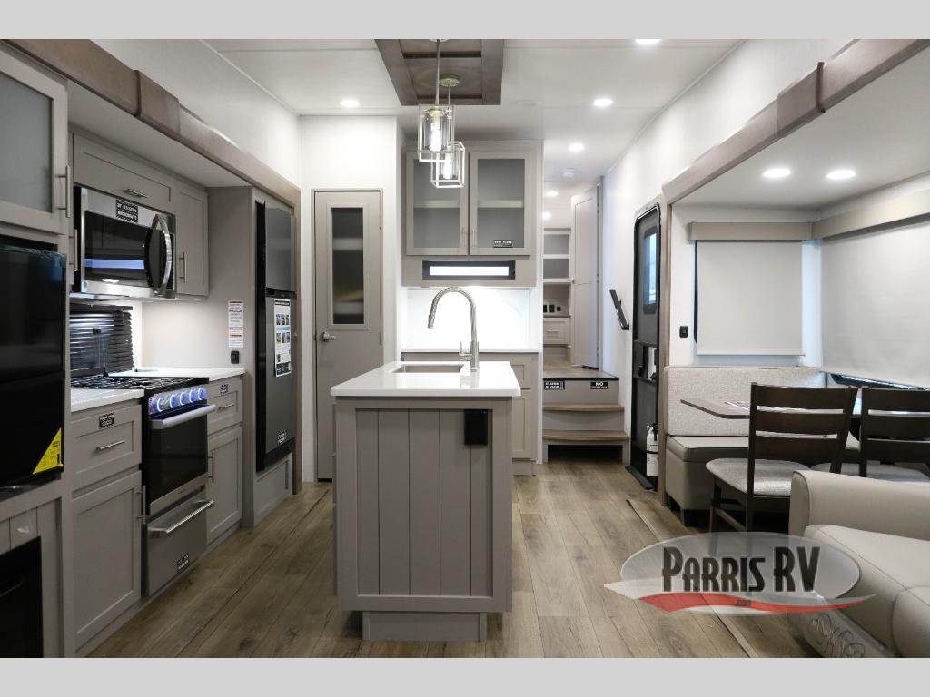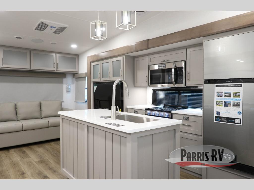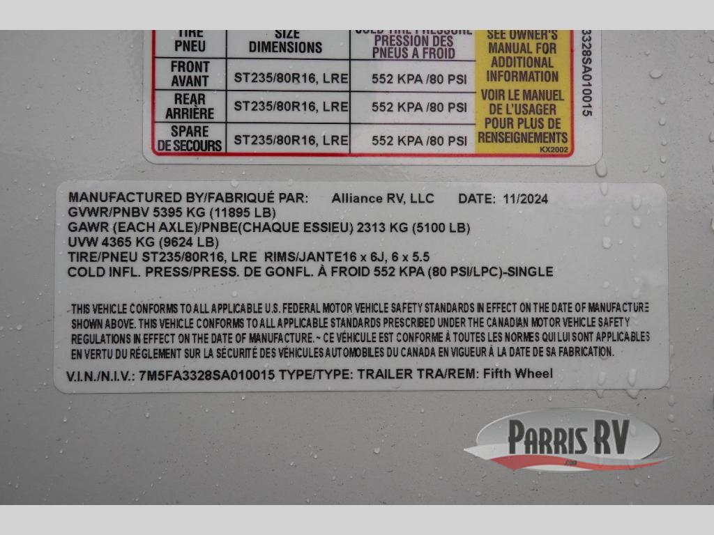 A benchmark chassis creates a space saver upper deck with each one of these Avenue All-Access fifth wheels by Alliance RV! The 101 in. wide-body construction gives you more room to walk around and the flush slide out floors throughout prevent any tripping. There are Azdel composite sidewalls inside and out, and a seamless fully walkable PVC roof for extreme durability and zero maintenance. You are sure to love the "no carpet zone" making each Avenue easy to clean and allergen free, not to mention pet friendly. You can maximize your space throughout with innovative storage solutions like the hidden storage behind the TV, inside the end tables, ottoman, and dinette chairs. These units also include the OTG Solar Package with a 200 watt solar panel, 15 amp MPPT charger, multiple outlets, and more to keep you powered up!