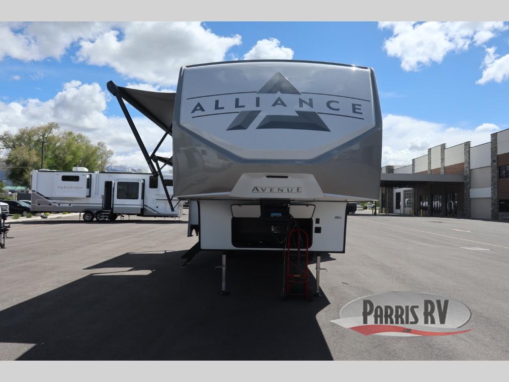 A benchmark chassis creates a space saver upper deck with each one of these Avenue All-Access fifth wheels by Alliance RV! The 101 in. wide-body construction gives you more room to walk around and the flush slide out floors throughout prevent any tripping. There are Azdel composite sidewalls inside and out, and a seamless fully walkable PVC roof for extreme durability and zero maintenance. You are sure to love the "no carpet zone" making each Avenue easy to clean and allergen free, not to mention pet friendly. You can maximize your space throughout with innovative storage solutions like the hidden storage behind the TV, inside the end tables, ottoman, and dinette chairs. These units also include the OTG Solar Package with a 200 watt solar panel, 15 amp MPPT charger, multiple outlets, and more to keep you powered up!