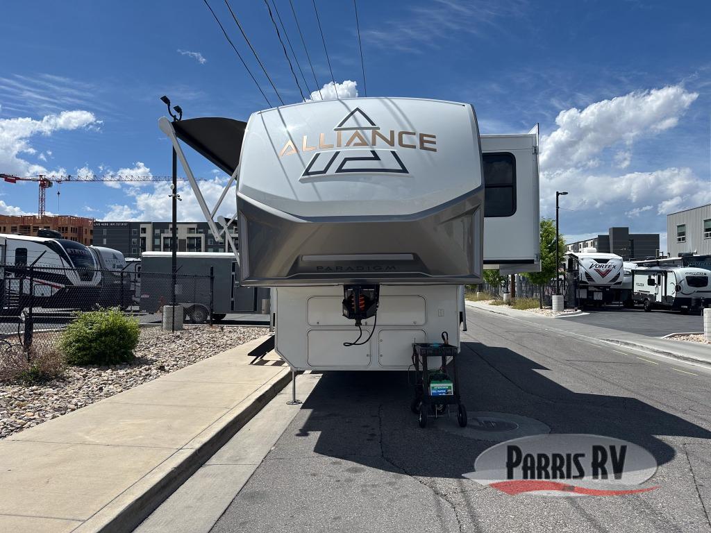 The Paradigm fifth wheels by Alliance RV are functional, high-quality, and luxurious for an unforgettable camping experience. There are three A/C units and a 40K BTU furnace to keep you comfortable year around, and you'll appreciate additional convenient amenities, like the all-in-one enclosed/heated utility center and the color coded and numbered wiring. A Rota-Flex pin box comes standard for hassle-free towing, along with Super-G 4,400 lb. rated tires and Dexter 7,000 lb. axles. You'll love the kitchen with its LG solid surface countertops and Insignia range, plus there is LED motion lighting in the pantry and a Maxx fan with a rain sensor to keep everything fresh when making dinner. Each model also includes an HD Smart TV in the living room and bedroom, plus a Winegard Air 360 antenna to keep you connected to the outside world. And of course there are a variety of options you can choose from to further customize your fifth wheel; dual pane windows, Super Solar Plus, slide out awning toppers, and generator prep or a generator to name a few!