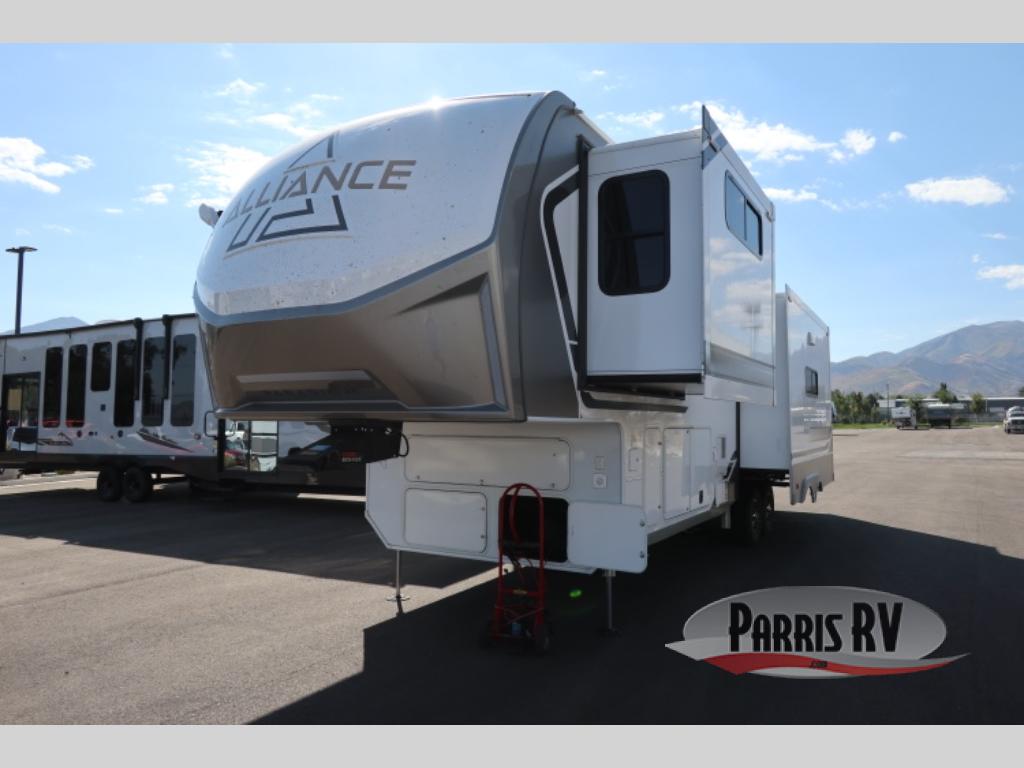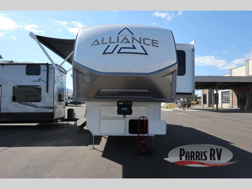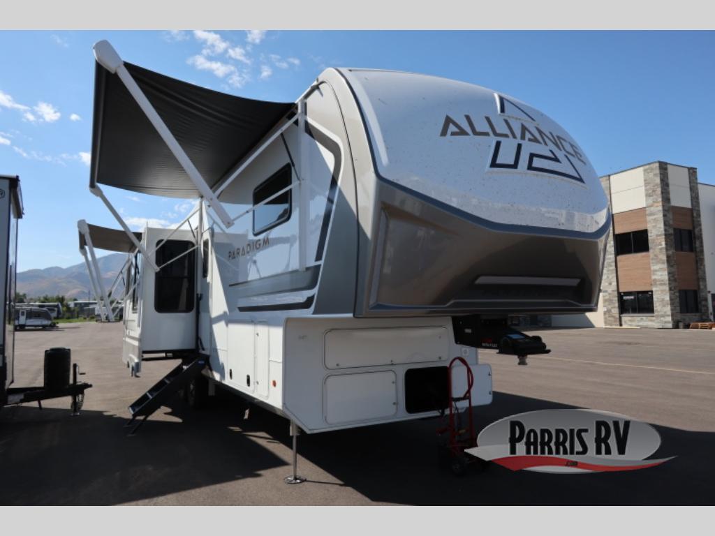 The Paradigm fifth wheels by Alliance RV are functional, high-quality, and luxurious for an unforgettable camping experience. There are three A/C units and a 40K BTU furnace to keep you comfortable year around, and you'll appreciate additional convenient amenities, like the all-in-one enclosed/heated utility center and the color coded and numbered wiring. A Rota-Flex pin box comes standard for hassle-free towing, along with Super-G 4,400 lb. rated tires and Dexter 7,000 lb. axles. You'll love the kitchen with its LG solid surface countertops and Insignia range, plus there is LED motion lighting in the pantry and a Maxx fan with a rain sensor to keep everything fresh when making dinner. Each model also includes an HD Smart TV in the living room and bedroom, plus a Winegard Air 360 antenna to keep you connected to the outside world. And of course there are a variety of options you can choose from to further customize your fifth wheel; dual pane windows, Super Solar Plus, slide out awning toppers, and generator prep or a generator to name a few!