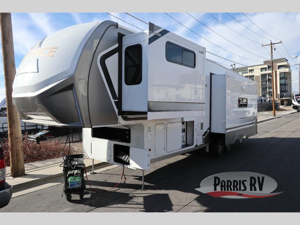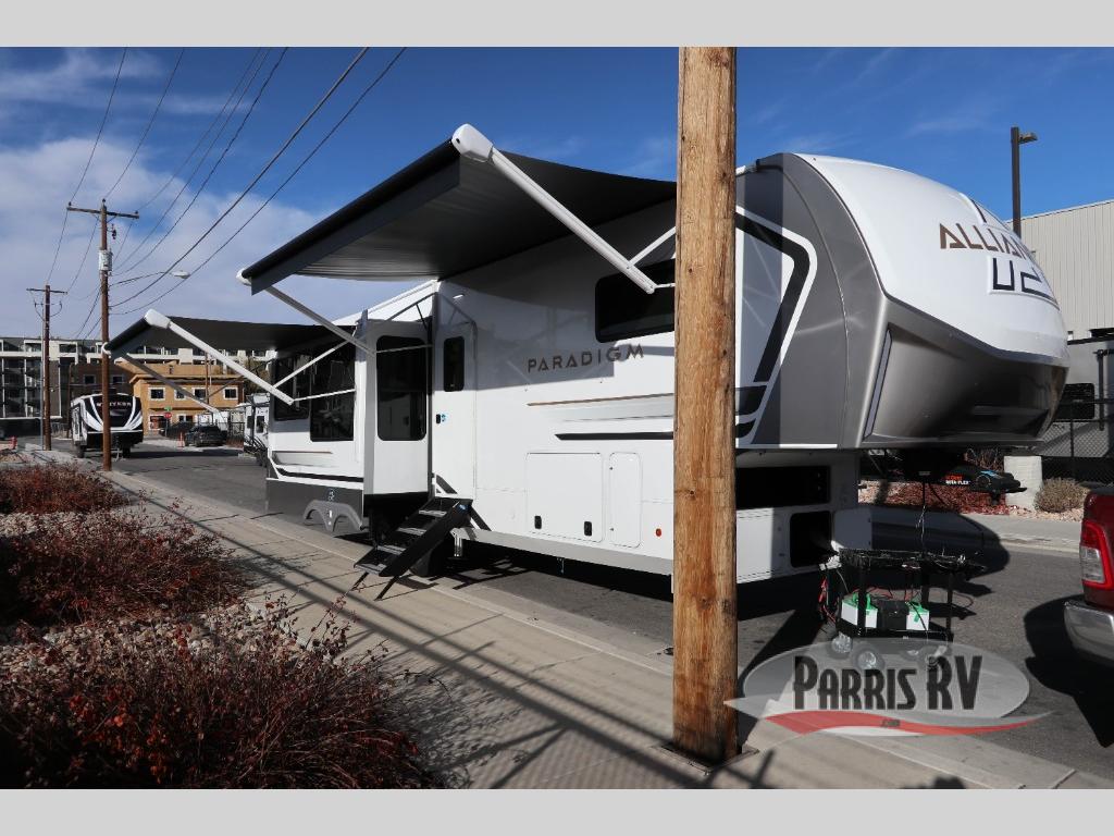 The Paradigm fifth wheels by Alliance RV are functional, high-quality, and luxurious for an unforgettable camping experience. There are three A/C units and a 40K BTU furnace to keep you comfortable year around, and you'll appreciate additional convenient amenities, like the all-in-one enclosed/heated utility center and the color coded and numbered wiring. A Rota-Flex pin box comes standard for hassle-free towing, along with Super-G 4,400 lb. rated tires and Dexter 7,000 lb. axles. You'll love the kitchen with its LG solid surface countertops and Insignia range, plus there is LED motion lighting in the pantry and a Maxx fan with a rain sensor to keep everything fresh when making dinner. Each model also includes an HD Smart TV in the living room and bedroom, plus a Winegard Air 360 antenna to keep you connected to the outside world. And of course there are a variety of options you can choose from to further customize your fifth wheel; dual pane windows, Super Solar Plus, slide out awning toppers, and generator prep or a generator to name a few!