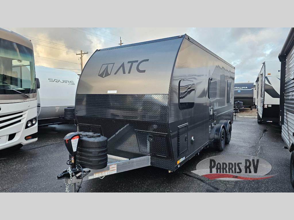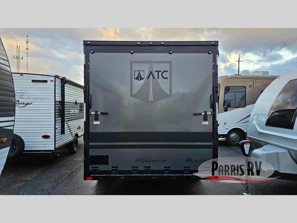 With any PLA 450 toy hauler travel trailer by ATC Trailers, you will enjoy lightweight towing and a configurable garage space for your toys, gear, and more! The all-aluminum and composite construction features no wood so you won't have to worry about rot, and the All-Weather Protection Package means you can extend your camping season. There is a 200-watt solar panel with a solar port, lithium battery prep, plus 12V outlets to keep your adventures going. Outside, you'll find storage for your gear, a power awning with a light strip, sleek frameless dual pane tinted windows, and more convenient features. The interior is just as accommodating with its dimmable ceiling lights throughout, decorative backsplash, configurable furniture track system, blackout roller shades, and the list of comforts goes on!