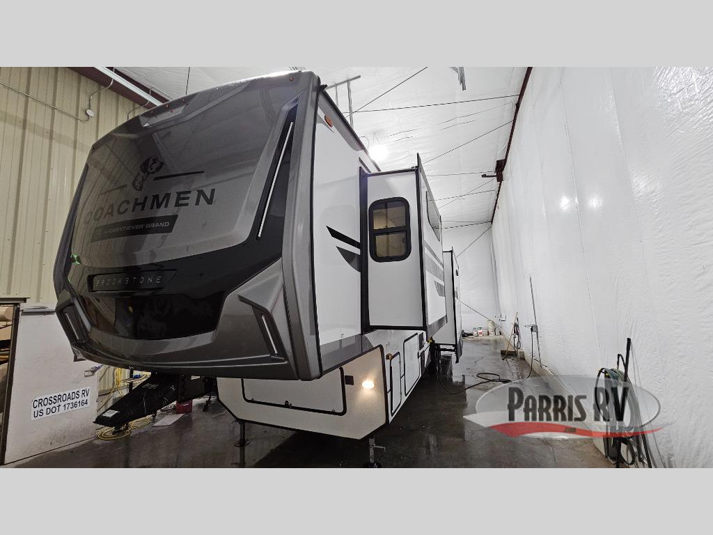 The Brookstone fifth wheels by Coachmen are coming to you with wide-body comfort, home-like amenities, and unique designs for a truly luxurious RV. The Weather Shield+ consists of a 6X double Azdel aluminum cage sidewall system, a Radiant Pro weather barrier system, and more that will help you extend your camping season or go full-time. Head inside to find solid surface countertops in the kitchen, an 4K Smart LED TV in the living room, slow rise roller night shades, and the list of comforts goes on! The Brookstone also includes 6-point electric auto-leveling, four Solid Step entry steps, an electric awning with LED lights, and many more exterior conveniences!