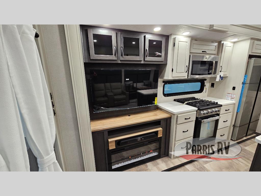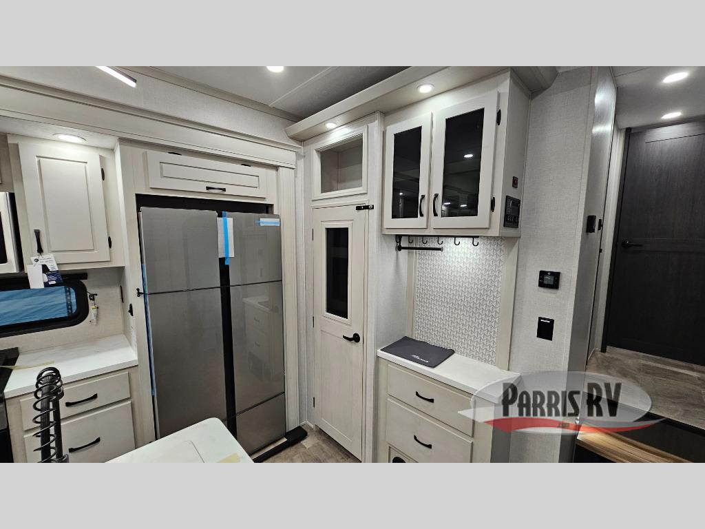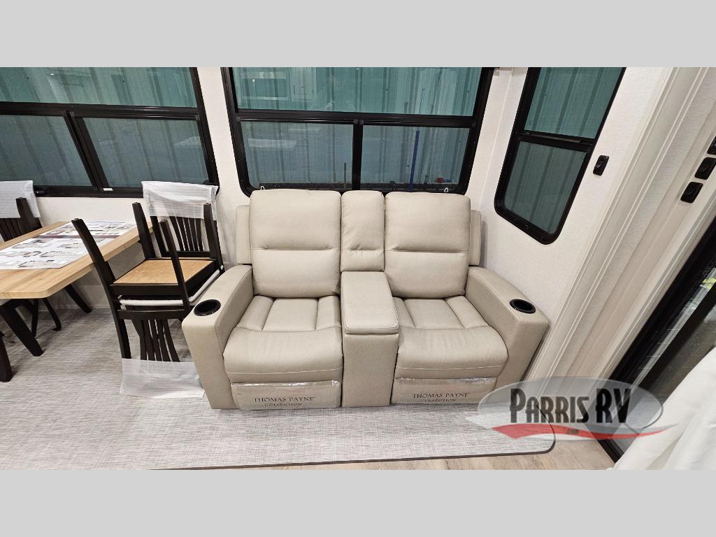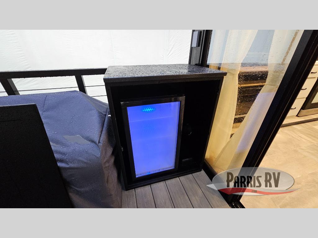 Step outside and enjoy the fresh air on our covered patio, complete with a refrigerator and optional L-shaped sofa, which is the perfect place to relax and unwind after a long day of adventure. Inside, the kitchen/living room area will make you feel an at-home experience, featuring overhead cabinets, an entertainment center, theater seating, a free-spanning table, a kitchen island, a microwave, a refrigerator, and a pantry. Perfect for cooking up a storm, entertaining friends and family, or simply relaxing and enjoying the comforts of home. The full bathroom is a spacious oasis, complete with a shower with a seat, a linen closet, and more. Plus, with a front bedroom featuring a king bed, dresser, washer and dryer prep, and a large wardrobe, you'll have the perfect place to rest and recharge after a long day of adventure. With two entry/exit doors and a massive 20’ awning, you'll have easy access to the RV and plenty of shade and protection from the weather.
