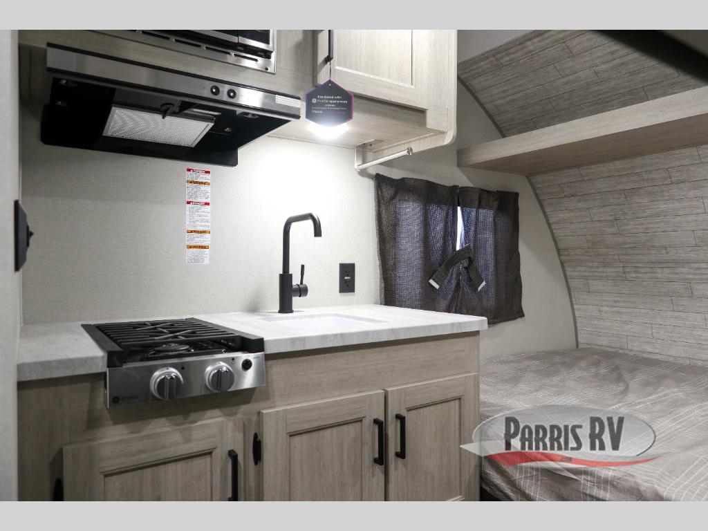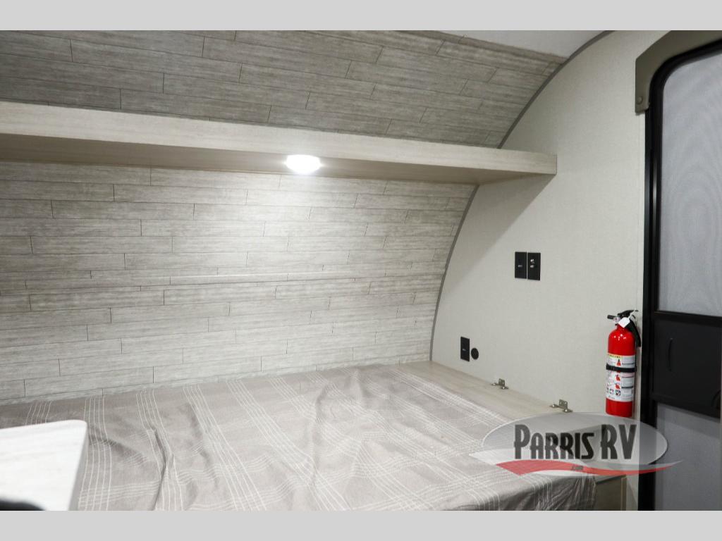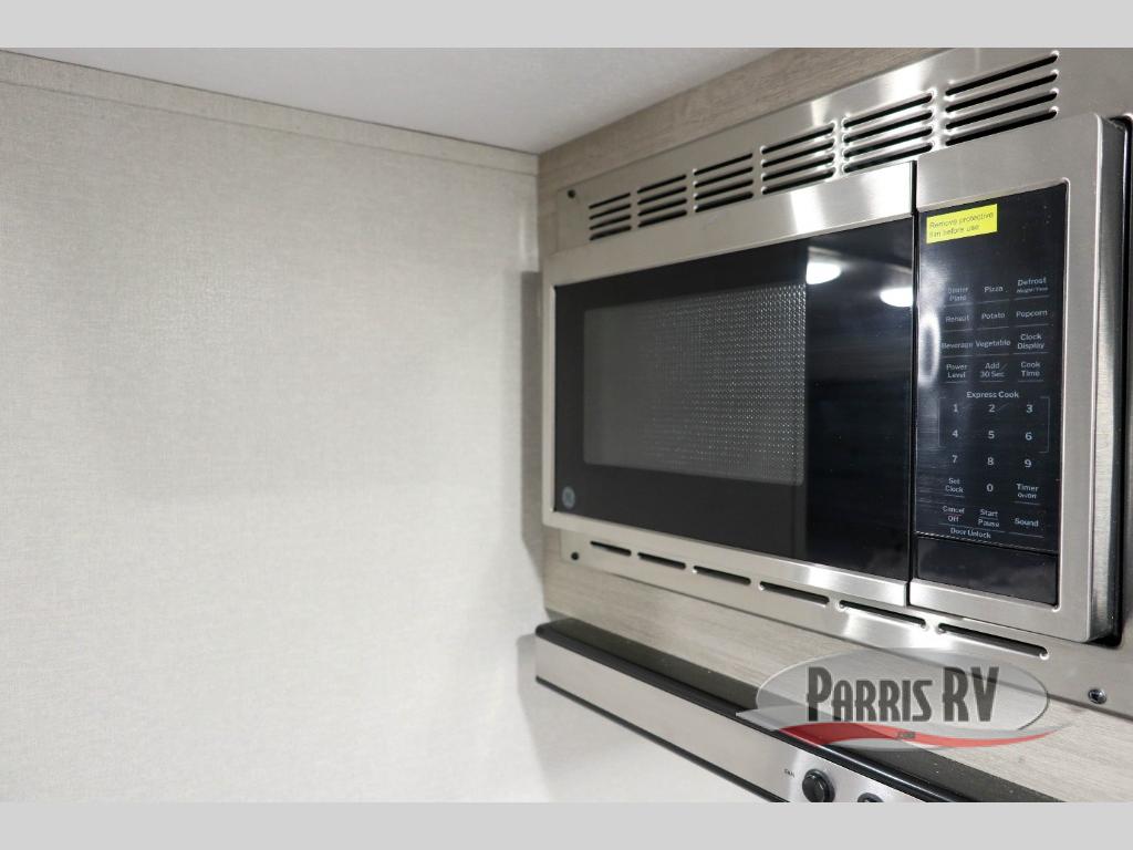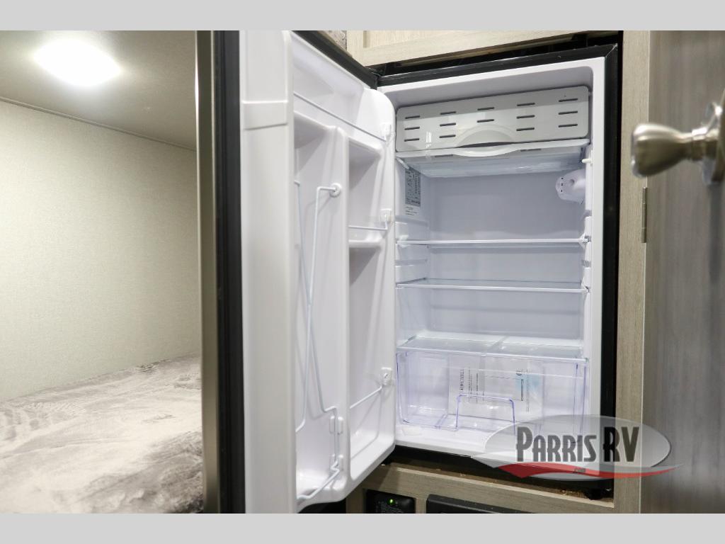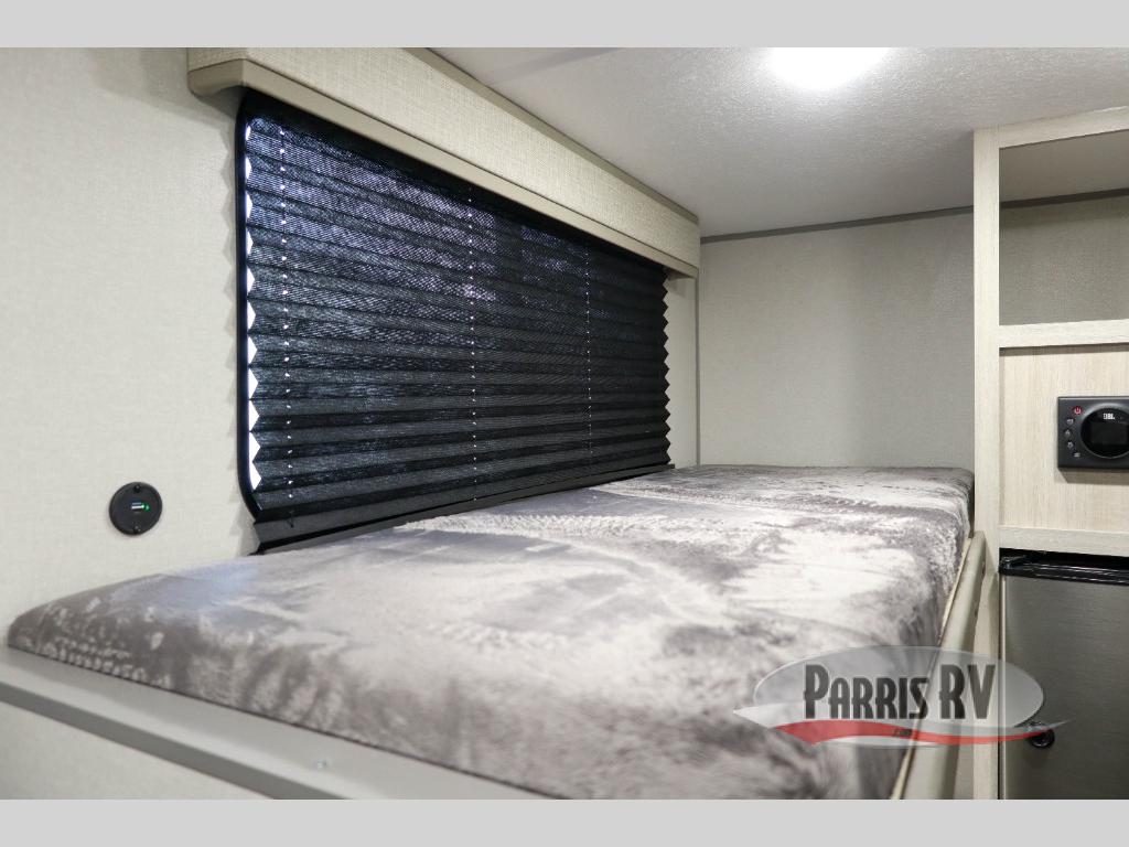 Lightweight camping is easier than you think with this travel trailer in tow! The front 54" x 74" queen bed will provide a great night's rest each night, while the little ones or your guests take the bunk beds. There is a handy shelf above the front bed for your belongings plus additional bedroom storage. A private bath includes a 24" x 32" shower and a toilet with a mirror behind it so you can freshen up each day. You'll also find a two burner cooktop and microwave oven to make meals each day plus a 3.3 cu. ft. 12V refrigerator for food storage!