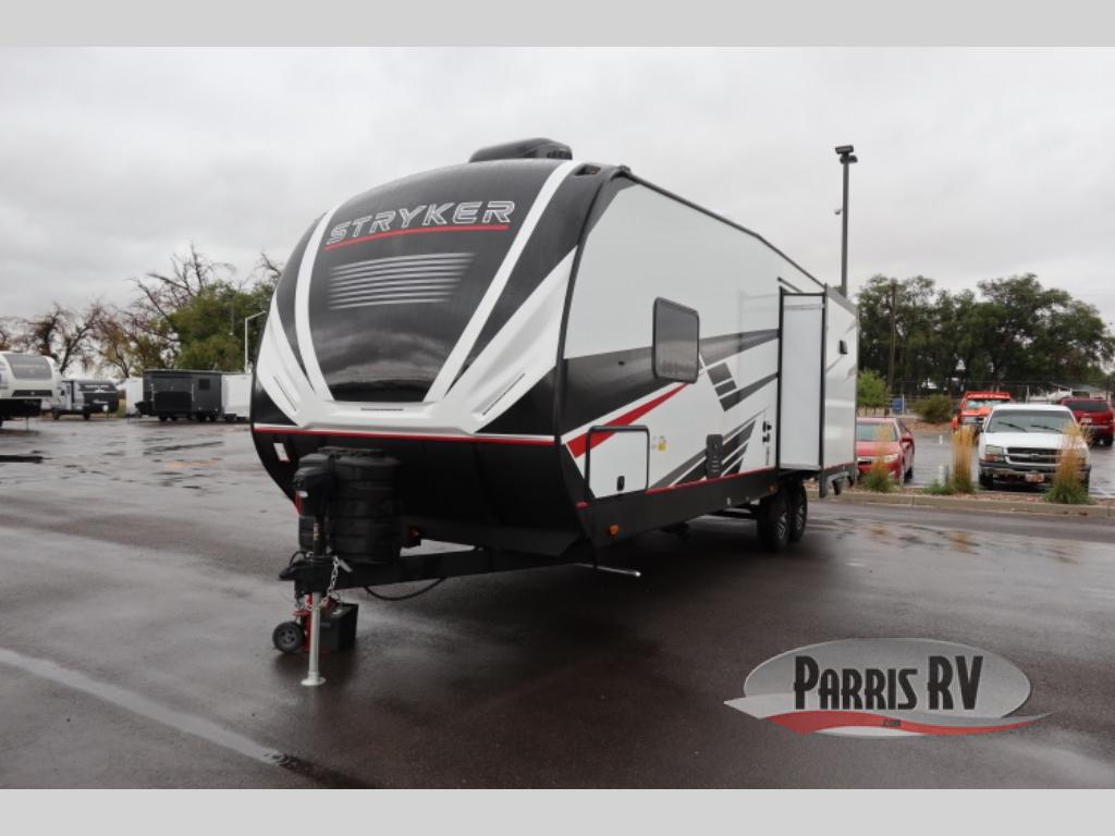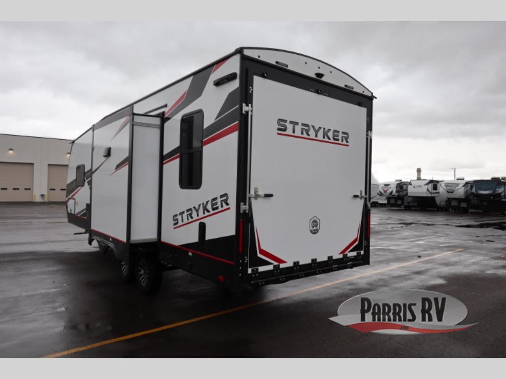 Each Stryker toy hauler travel trailer by Cruiser starts with a powder coated structural steel I-beam frame, Azdel composite laminated sidewalls, and a 102" wide body, perfect for your side-by-side, dirt bikes, or kayaks! The EZ flex rubberized suspension provides smooth towing on tougher roads, and the painted molded fiberglass front cap not only looks sleek, but provides better protection. Inside, you'll find barreled ceilings up to 98" in height, solid surface kitchen cabinets, and numerous USB ports and 110V outlets. There's so much more to love about the Stryker toy haulers, like the premium sound system, large windows, tons of storage space, and the list goes on!