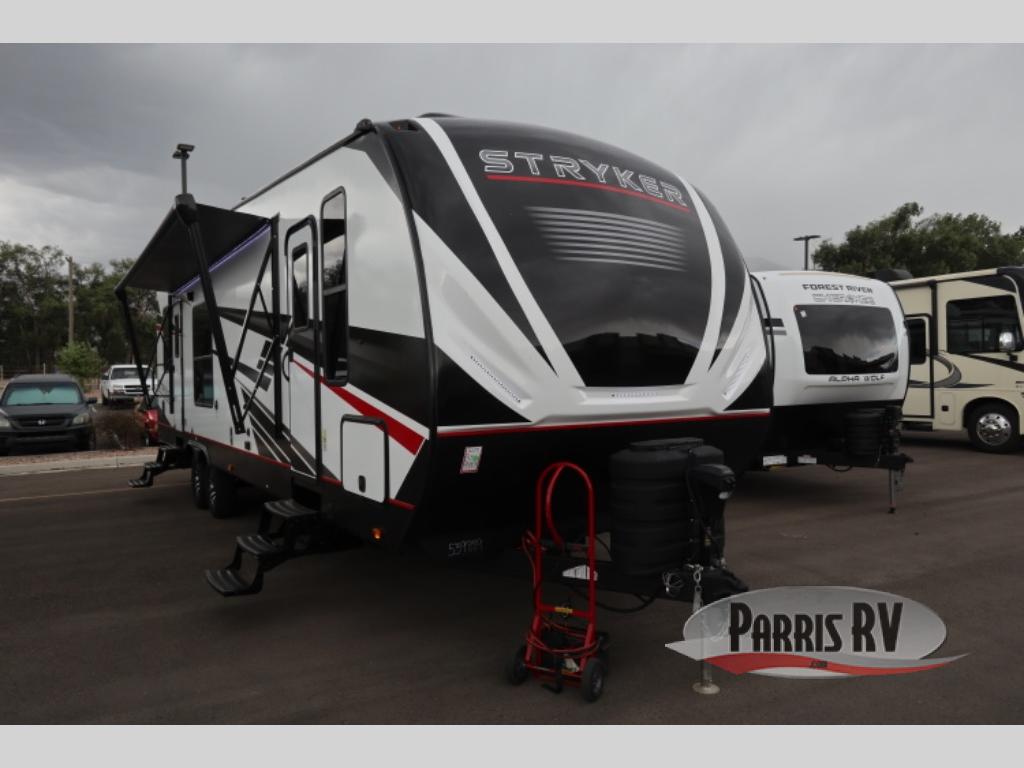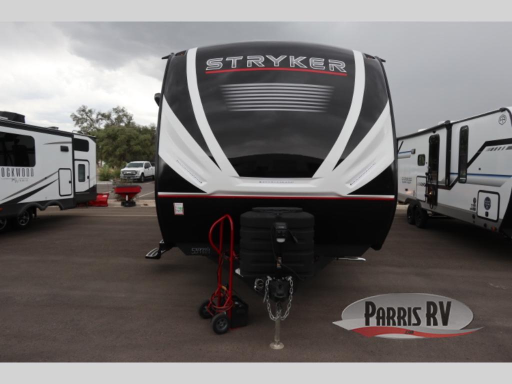 Each Stryker toy hauler travel trailer by Cruiser starts with a powder coated structural steel I-beam frame, Azdel composite laminated sidewalls, and a 102" wide body, perfect for your side-by-side, dirt bikes, or kayaks! The EZ flex rubberized suspension provides smooth towing on tougher roads, and the painted molded fiberglass front cap not only looks sleek, but provides better protection. Inside, you'll find barreled ceilings up to 98" in height, hardwood cabinet doors, solid surface kitchen cabinets, and numerous USB ports and 110V outlets. The removable carpet in the garage will create an open concept you are sure to love, and the industry-first pet palace under the bed will allow you to bring your loyal furry friends along. There's so much more to love about the Stryker toy haulers, like the premium sound system, the large windows, tons of storage space, and the list goes on!