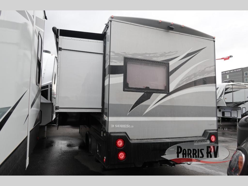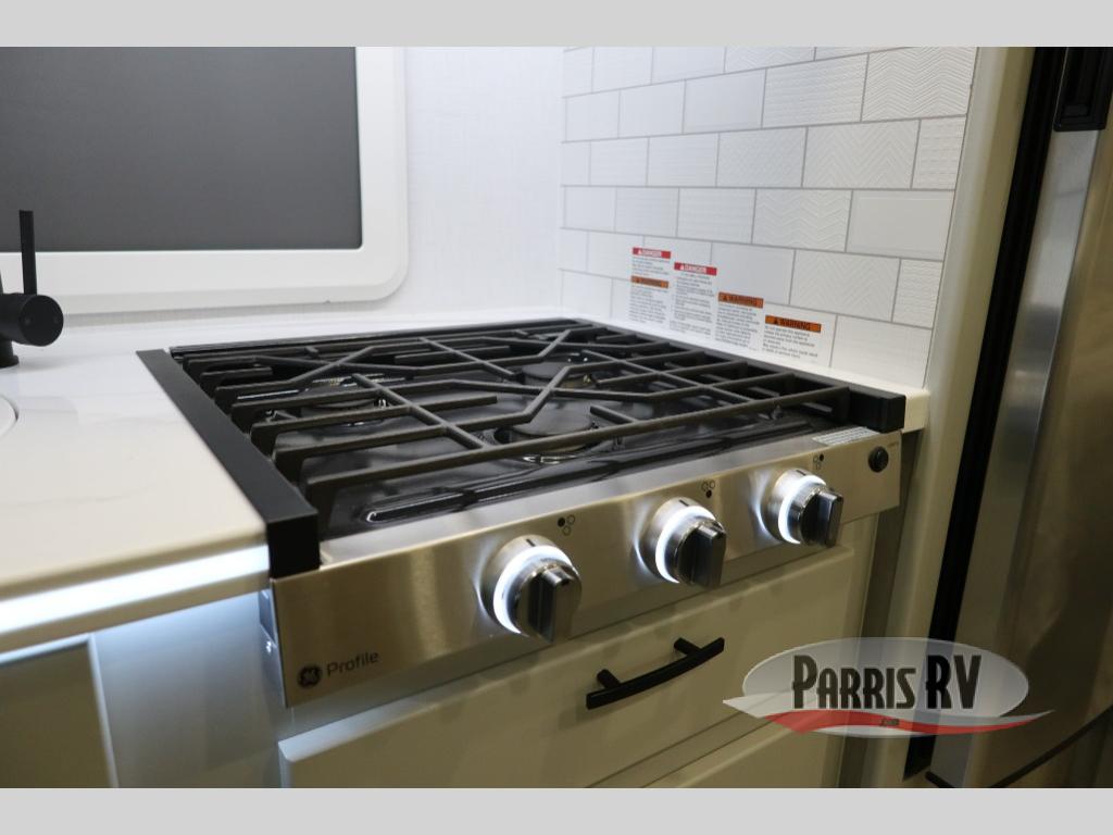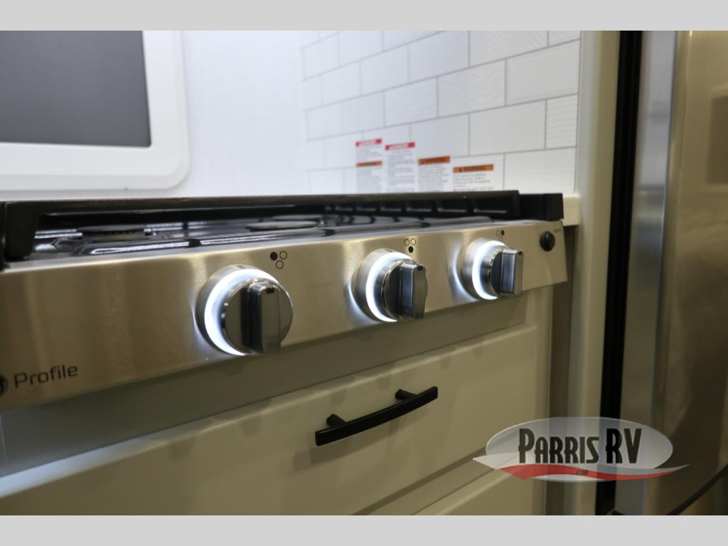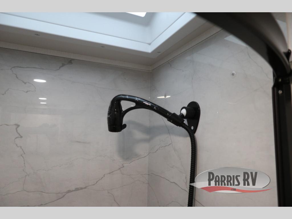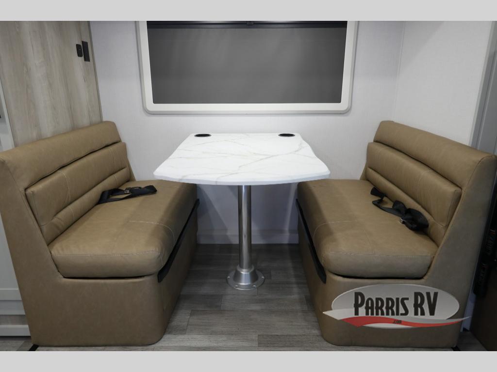 Take this motorhome on your greatest adventures yet! Start each morning feeling well rested after sleeping on the corner queen bed then head to the rear corner bathroom to freshen up in the shower with an Oxygenics body spa RV shower head and a skylight above for added headroom and natural lighting. Now that you're ready for the day, you can grab some eggs from the 8 cu. ft. two-door compressor-driven refrigerator and fry them up on the three burner cooktop, then enjoy them at the booth dinette. The kitchen also has a countertop extension for more meal prepping space and a convection microwave. This unit also includes a living room 32" LED Smart TV and a 32" LED smart TV across from the bed. You could even switch things up by replacing the booth dinette with an optional 3-seat power recliner, and adding a cab over bunk option!