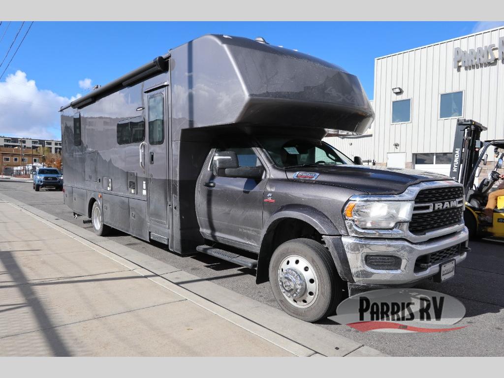 Each one of these Dynamax isata 5 Super C diesel motorhomes offer control, comfort, and stability thanks to the Ram 5500 SLT chassis with factory 4-wheel drive! They are powered by a Cummins 6.7L I6 turbo diesel engine and an AISIN HD 6-speed automatic transmission. Their construction consists of 2" aluminum-framed, laminated sidewalls with block foam insulation, composite exterior fiberglass, and a composite flooring substrate that is lightweight and moisture resistant. You will see their attention to detail everywhere you look including ambient lighting, premium cut and buffed paint finish, and a water filtration system for clean water where ever you go. They even have a single 190 watt solar panel with a 30 amp controller so you can go off the grid. Come check out your favorite model today!
