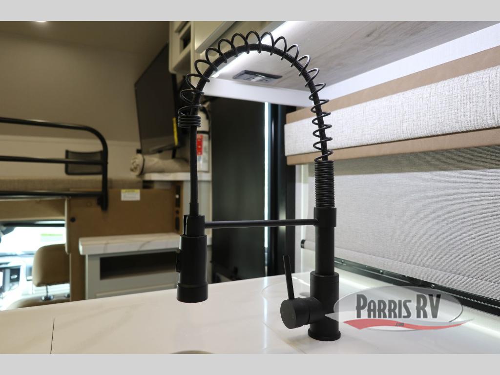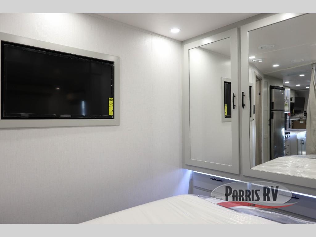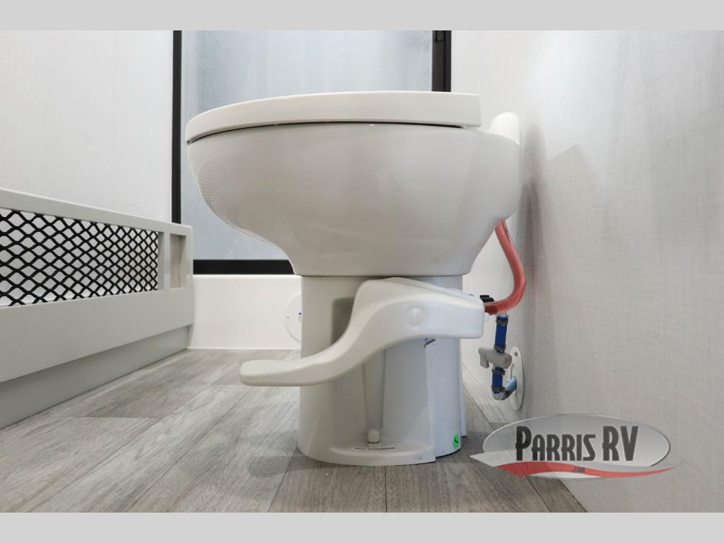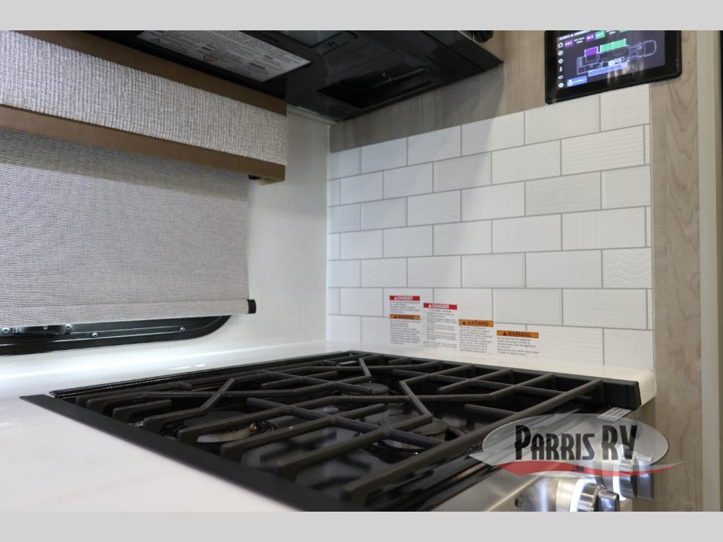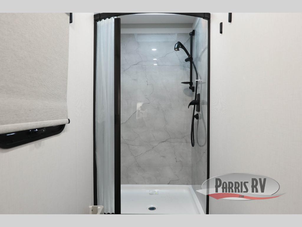 You will have plenty of space to walk about this motorhome with the dual slides! The booth dinette and sofa slide create an open concept living area and the sofa can be replaced for the optional theater seating if you prefer that instead. Freshen up after a long day of traveling in the rear corner bathroom with the designer shower that has a skylight above for more natural lighting and an Oxygenics body spa RV shower head for a more relaxing shower. Put on your comfy clothes stored in the wardrobe in the rear corner private bedroom then either lay on the 60" x 75" gel-infused memory foam mattress while you watch a movie on the 32" LED smart TV or head to the kitchen and whip up a meal with the three burner gas range and countertop extension. You could even head outside and watch a movie on the exterior 32" TV underneath the 16' dual-pitch armless awning!