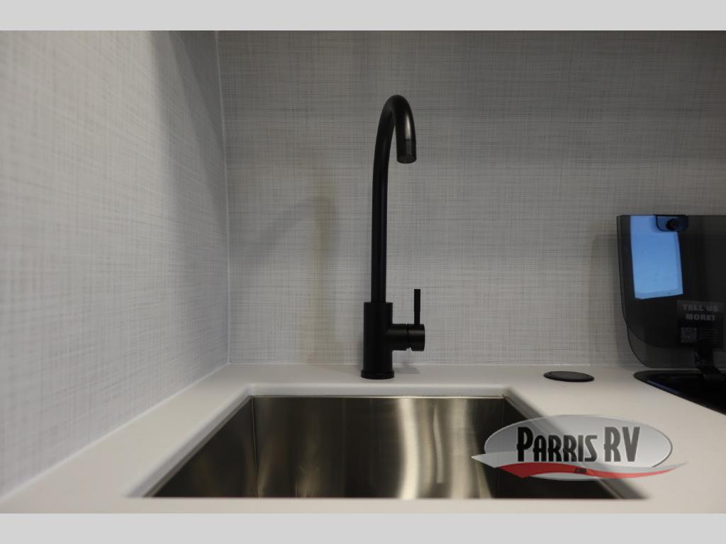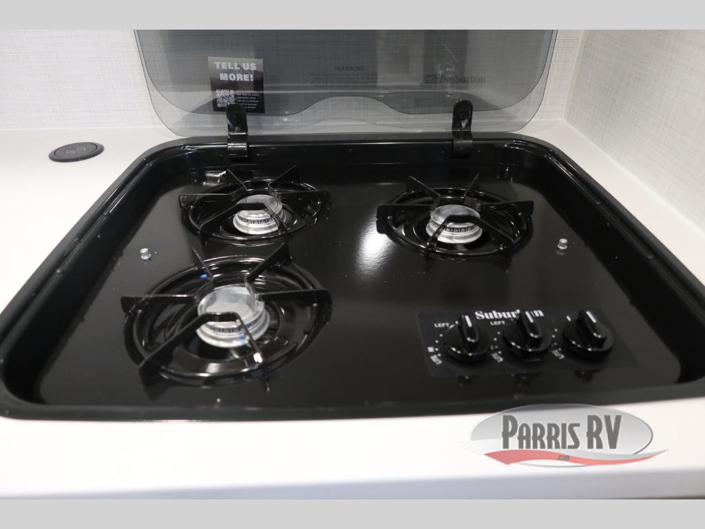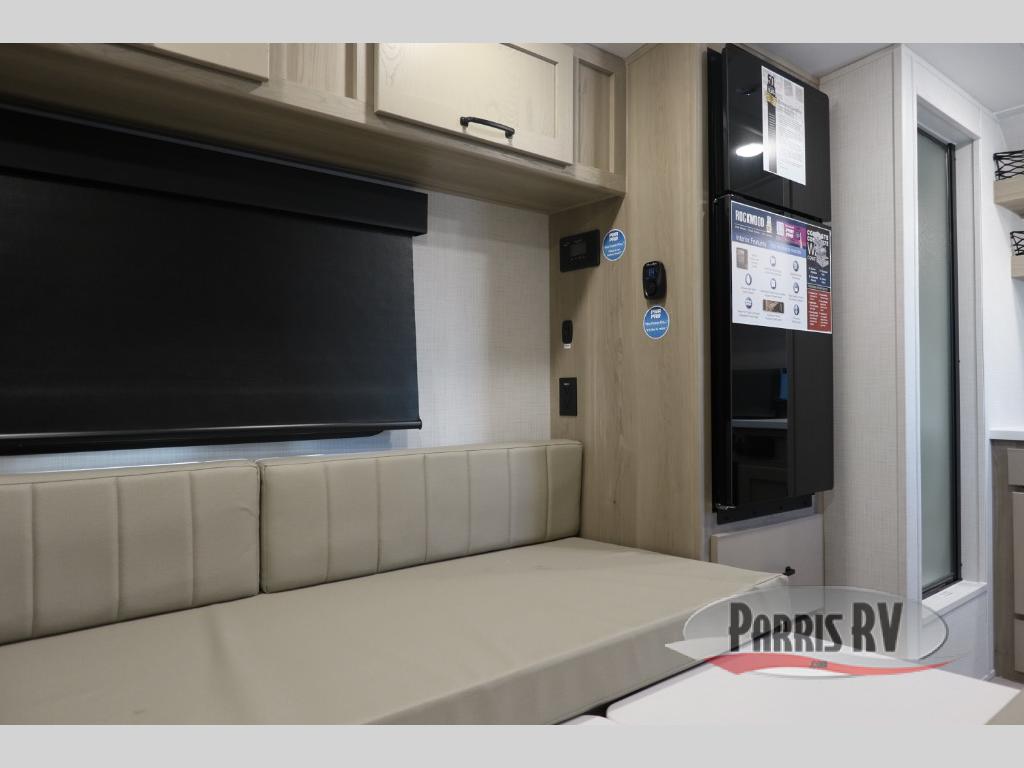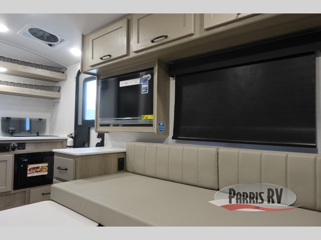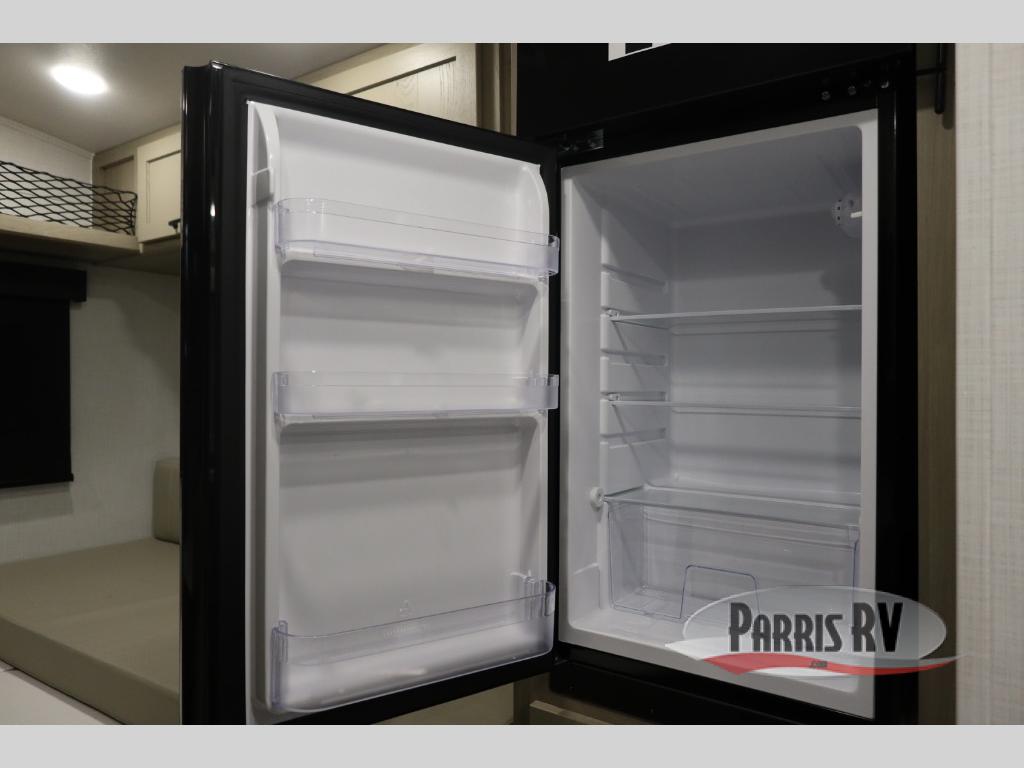 It won't be hard to find comfort in this travel trailer. It may be smaller on size, but it doesn't skim on features. The twin beds convert to a king-size bed for your comfort, and there is even a 32" 12V TV to enjoy in the evenings. The kitchen includes a three burner cooktop, a convection microwave, plus a 12V refrigerator for perishables. You'll find overhead compartments for your valuables and exterior storage for your hiking gear!