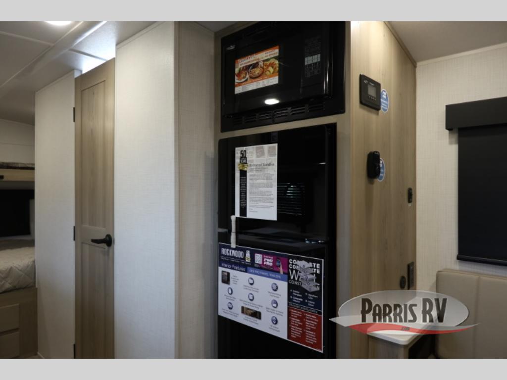 With any Rockwood GEO Pro travel trailer by Forest River you will enjoy easy towing, durable construction, and off-road capabilities with larger 15" tires and a lift kit! Each model is constructed with complete composite wall construction for added strength and durability, and the torsion axle, Rubber-Ryde suspension will make towing easier than ever. Inside, you'll find sleek roller shades for added privacy, a 12V refrigerator and a microwave, plus a 20,000 BTU furnace to keep you warm during the colder camping months.