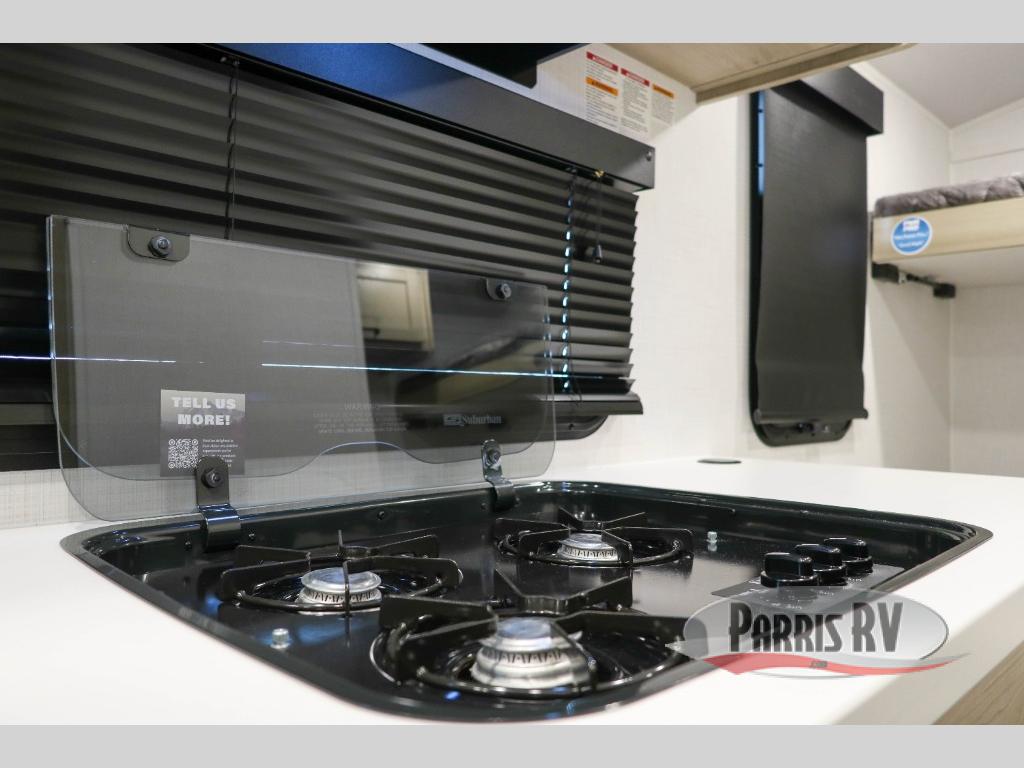 You'll love camping in this travel trailer that can sleep five each night. There is a front U-shaped dinette, a rear 54" x 74" full-size bed, plus a 26" x 80" flip-up bunk! A three burner cooktop and microwave oven let you create your best meals, and there is a 15' power awning and an exterior griddle if you want to cook outdoors. The full bath gives you privacy when freshening up after a day outdoors, and you'll find plenty of storage space in this unit, including in the overhead cabinets and the exterior pass-thru storage!