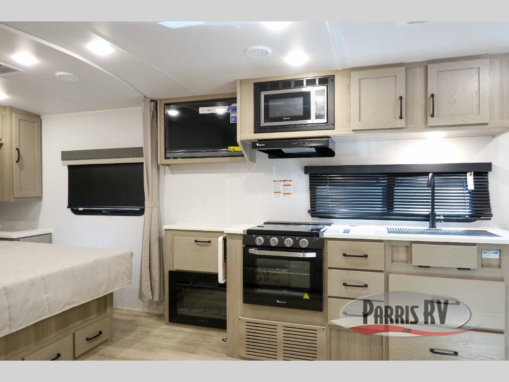 Each Rockwood Mini Lite travel trailer by Forest River is constructed with a fully laminated one-piece walkable roof, sleek frameless windows, and a six-sided full aluminum frame for strength and durability. The 12V thermostatically controlled heated tanks, plus radiant foil in the underbelly and slide out floors will allow you to camp well into the colder months, and the 200W roof solar panel will be perfect for a little off-gridding. Each model includes solid surface kitchen countertops, solid wood cabinet doors, night roller shades, plus many more interior features. Having an AIR 360+ omnidirectional antenna with WiFi prep on board gives you the option to get some work done if it's needed, and the power tongue jack provides hassle-free set up, so you can enjoy more time relaxing!