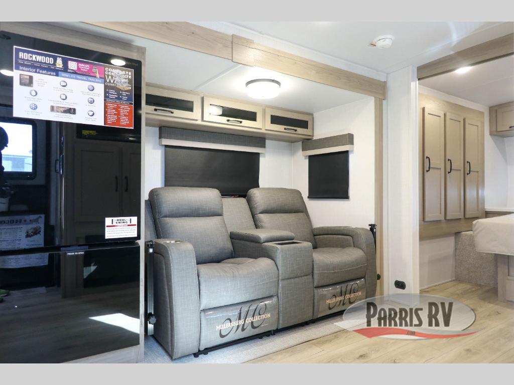 Each Rockwood Mini Lite travel trailer by Forest River is constructed with a fully laminated one-piece walkable roof, sleek frameless windows, and a six-sided full aluminum frame for strength and durability. The 12V thermostatically controlled heated tanks, plus radiant foil in the underbelly and slide out floors will allow you to camp well into the colder months, and the 200W roof solar panel will be perfect for a little off-gridding. Each model includes solid surface kitchen countertops, solid wood cabinet doors, night roller shades, plus many more interior features. Having an AIR 360+ omnidirectional antenna with WiFi prep on board gives you the option to get some work done if it's needed, and the power tongue jack provides hassle-free set up, so you can enjoy more time relaxing!