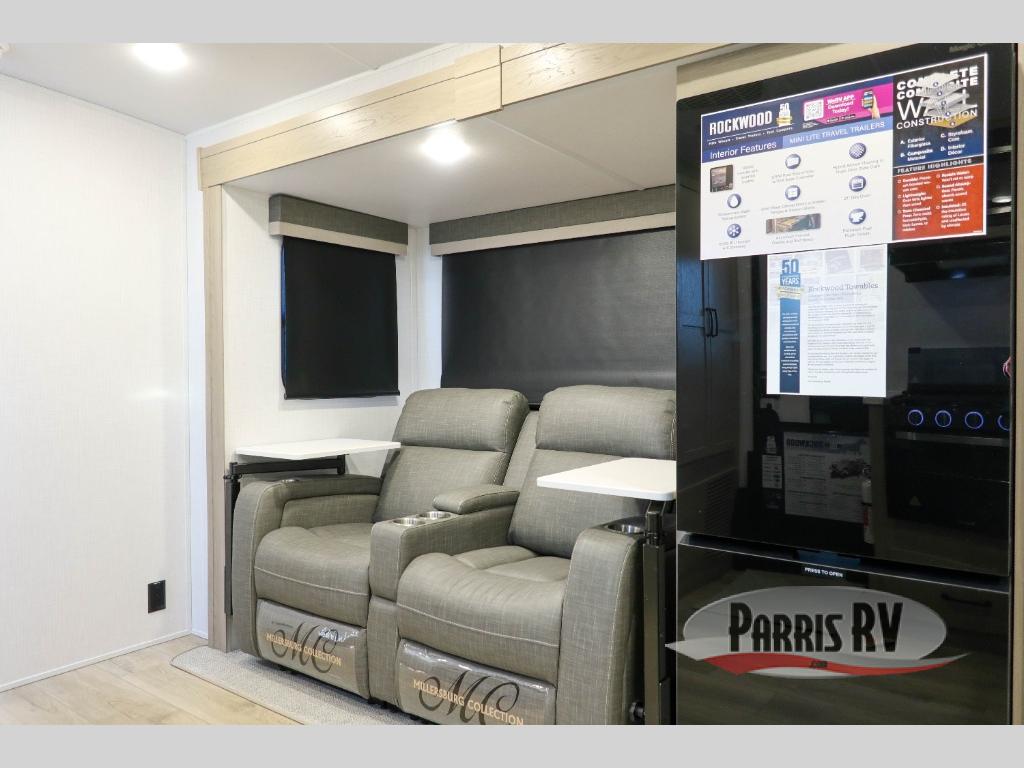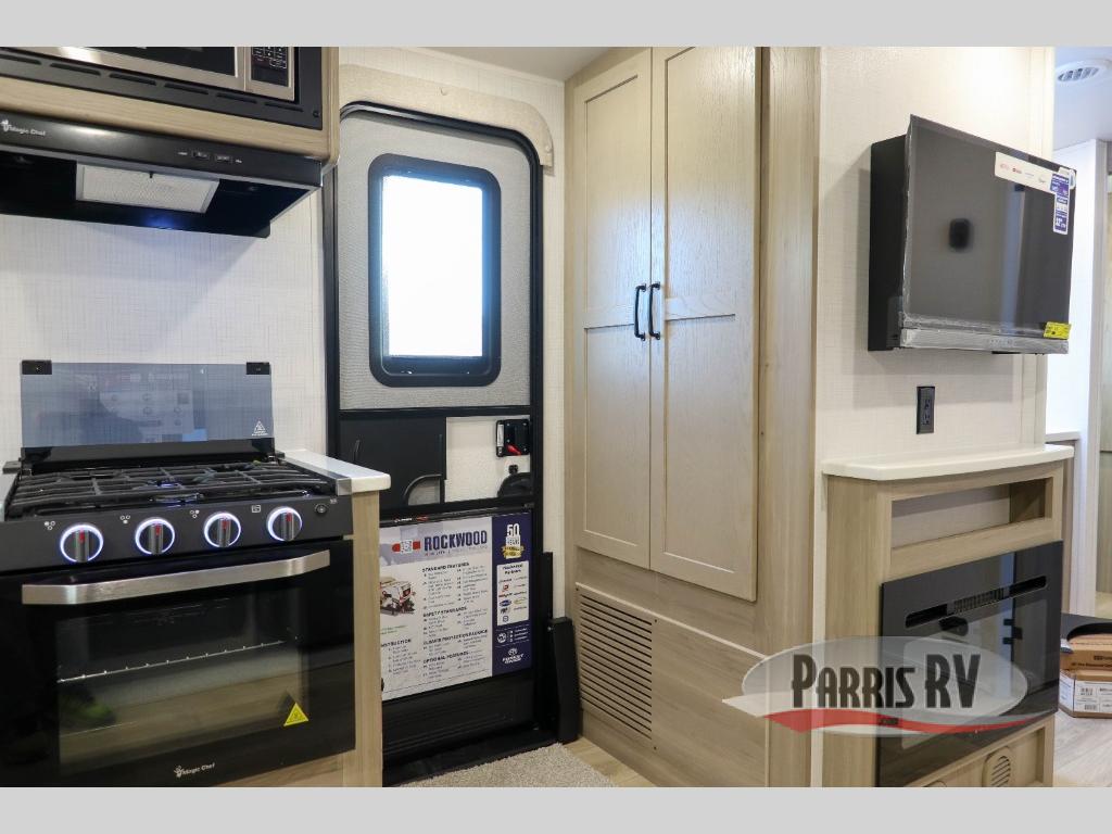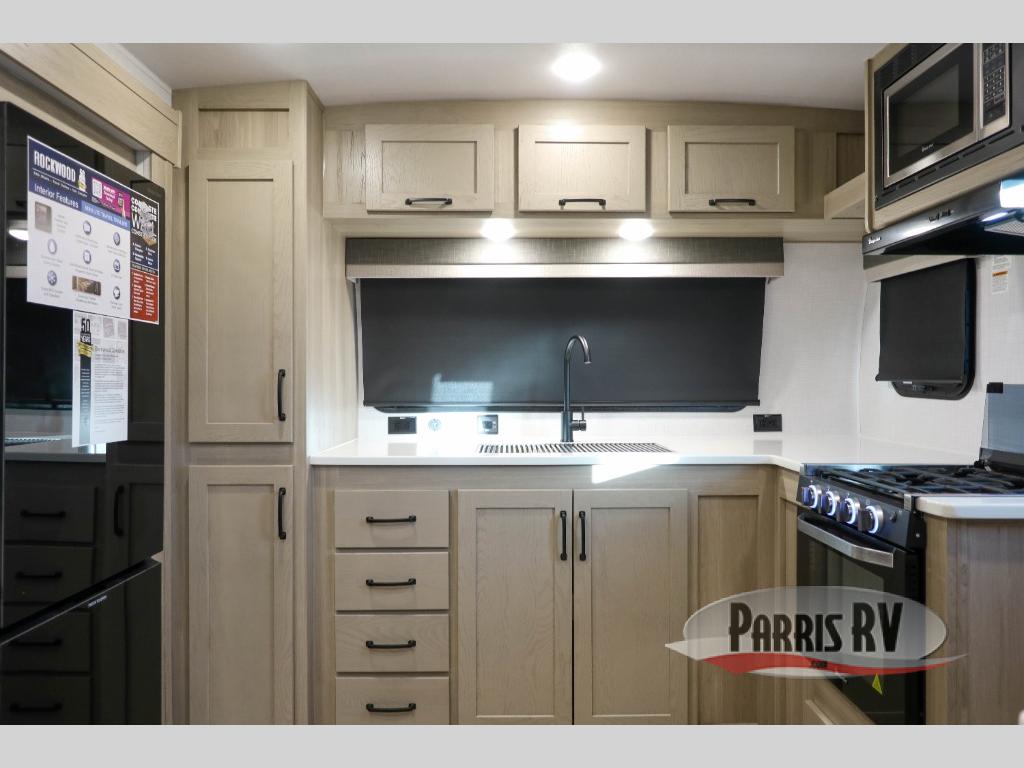 Each Rockwood Mini Lite travel trailer by Forest River is constructed with a fully laminated one-piece walkable roof, sleek frameless windows, and a six-sided full aluminum frame for strength and durability. The 12V thermostatically controlled heated tanks, plus radiant foil in the underbelly and slide out floors will allow you to camp well into the colder months, and the 200W roof solar panel will be perfect for a little off-gridding. Each model includes solid surface kitchen countertops, solid wood cabinet doors, night roller shades, plus many more interior features. Having an AIR 360+ omnidirectional antenna with WiFi prep on board gives you the option to get some work done if it's needed, and the power tongue jack provides hassle-free set up, so you can enjoy more time relaxing!