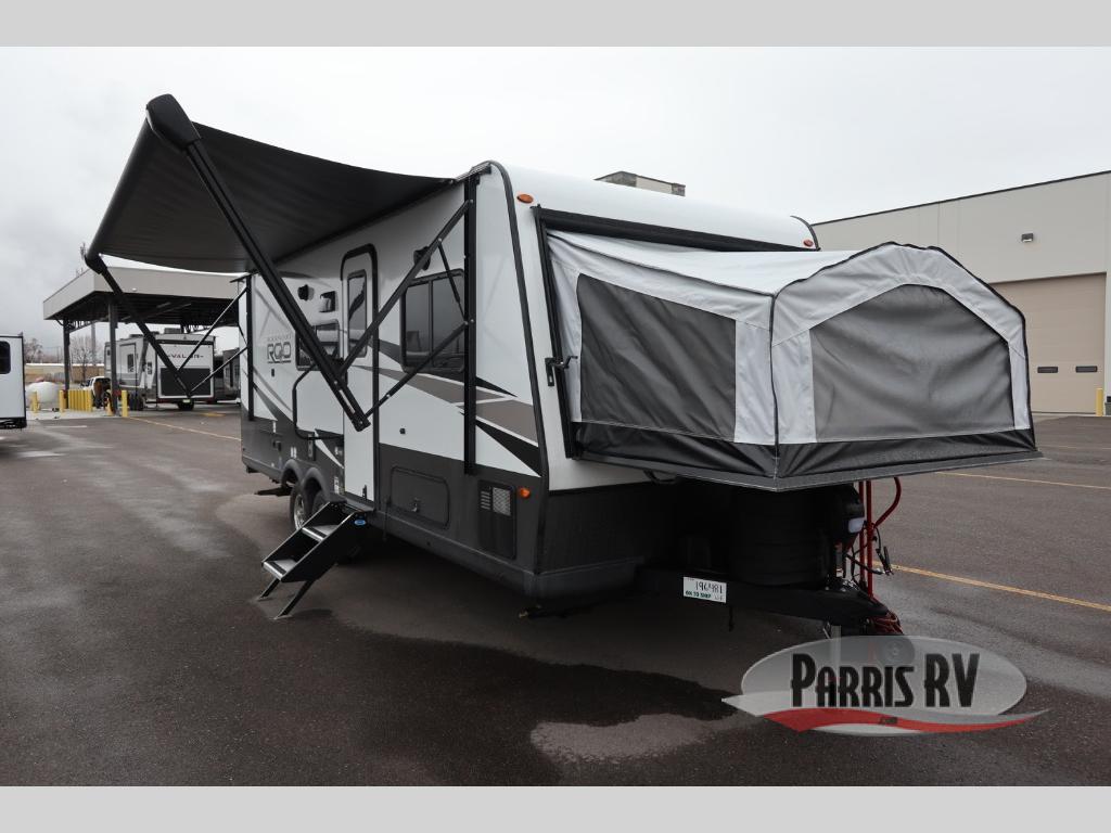 With any Rockwood Roo expandable travel trailer by Forest River you will enjoy smooth towing thanks to the torsion axle, Rubber-Ryde suspension, the easy lube axles and Nev-R-Adjust brakes. The key-Alike locks provide easy access in and out of your trailer, and each model includes prep for a Air 360+Omnidirectional antenna with WiFi for all your connection needs. Each model is constructed with a vacuum laminated one-piece roof and walls, an enclosed underbelly, and tinted framed windows for a more sleek look. You will enjoy many interior comforts, including hardwood cabinet doors and drawer fronts, night roller shades, a bunk/fan light combo with each bed, and much more!