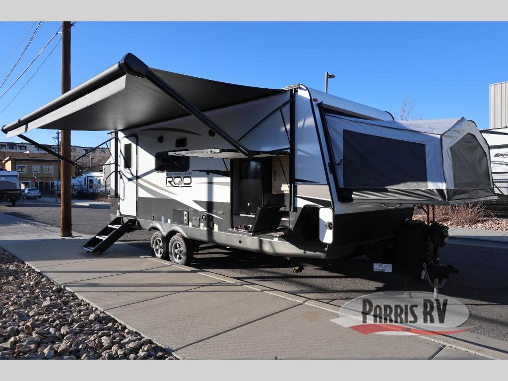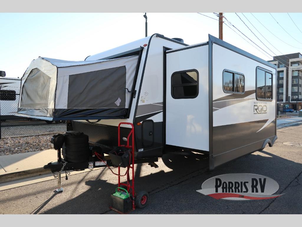 With any Rockwood Roo expandable travel trailer by Forest River you will enjoy smooth towing thanks to the torsion axle, Rubber-Ryde suspension, the easy lube axles and Nev-R-Adjust brakes. The key-Alike locks provide easy access in and out of your trailer, and each model includes prep for a Air 360+Omnidirectional antenna with WiFi for all your connection needs. Each model is constructed with a vacuum laminated one-piece roof and walls, an enclosed underbelly, and tinted framed windows for a more sleek look. You will enjoy many interior comforts, including hardwood cabinet doors and drawer fronts, night roller shades, a bunk/fan light combo with each bed, and much more!
