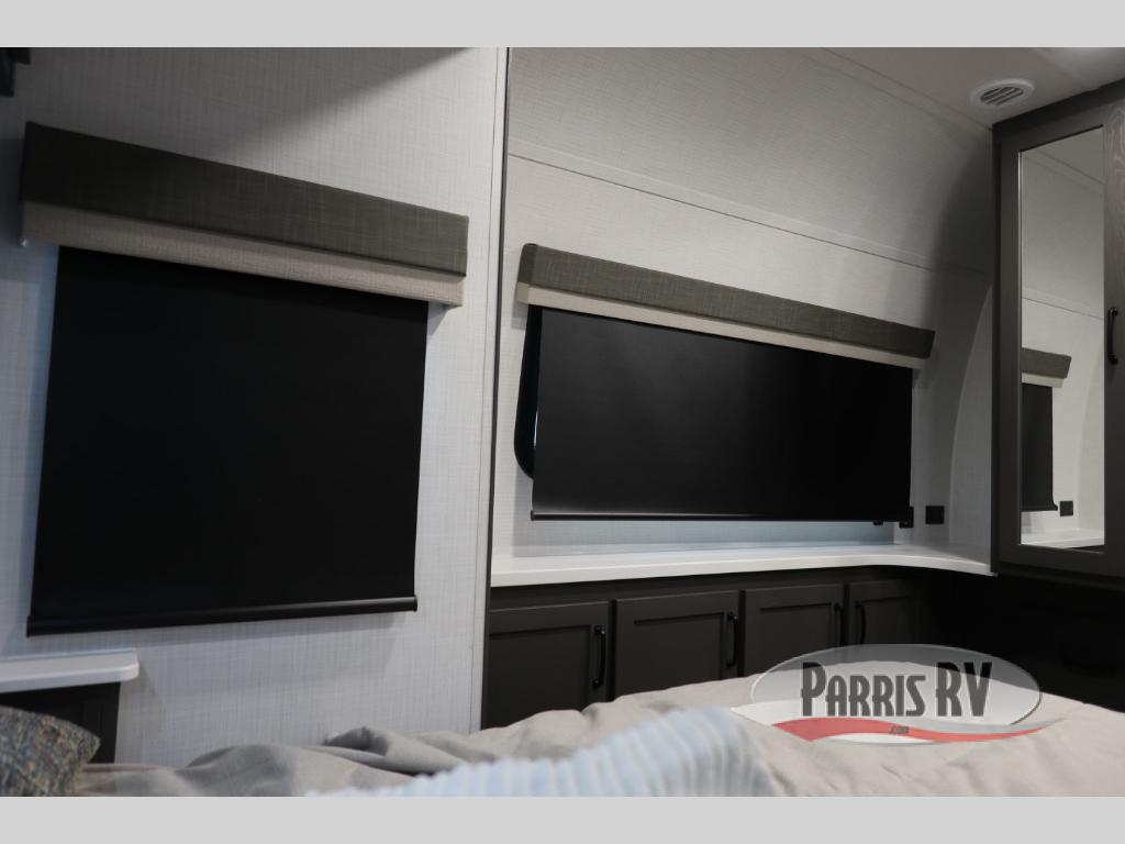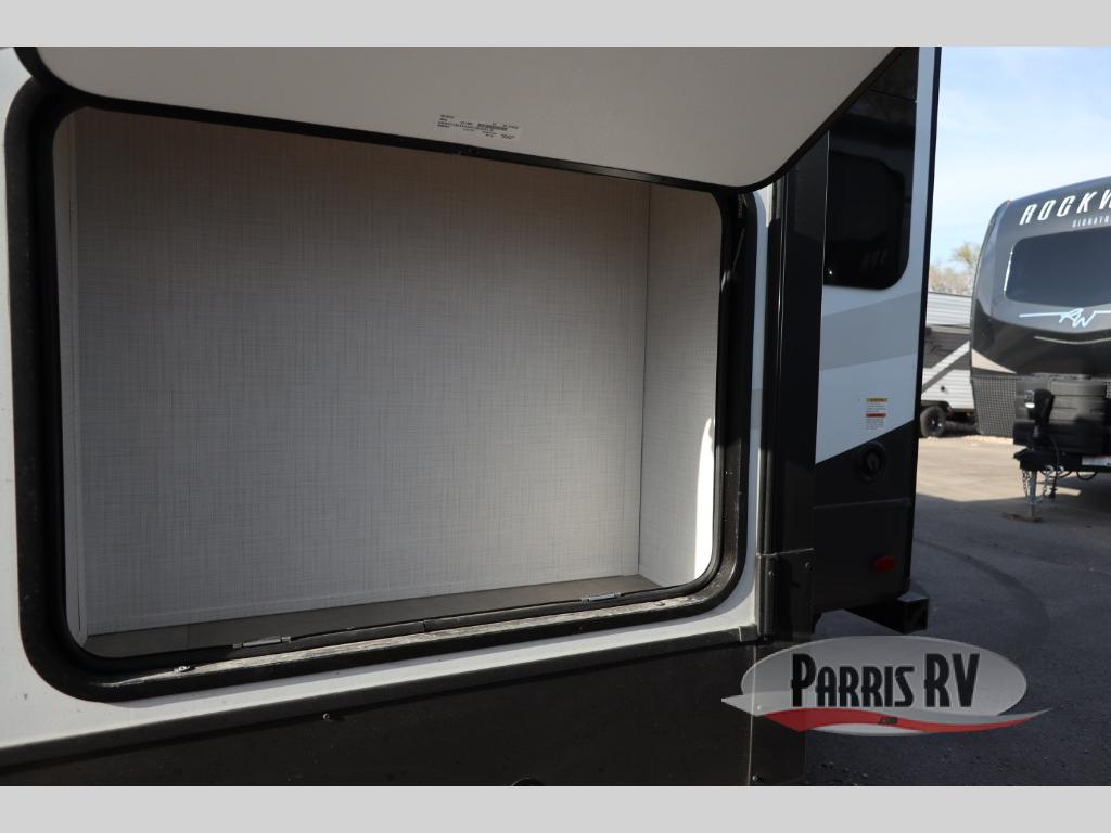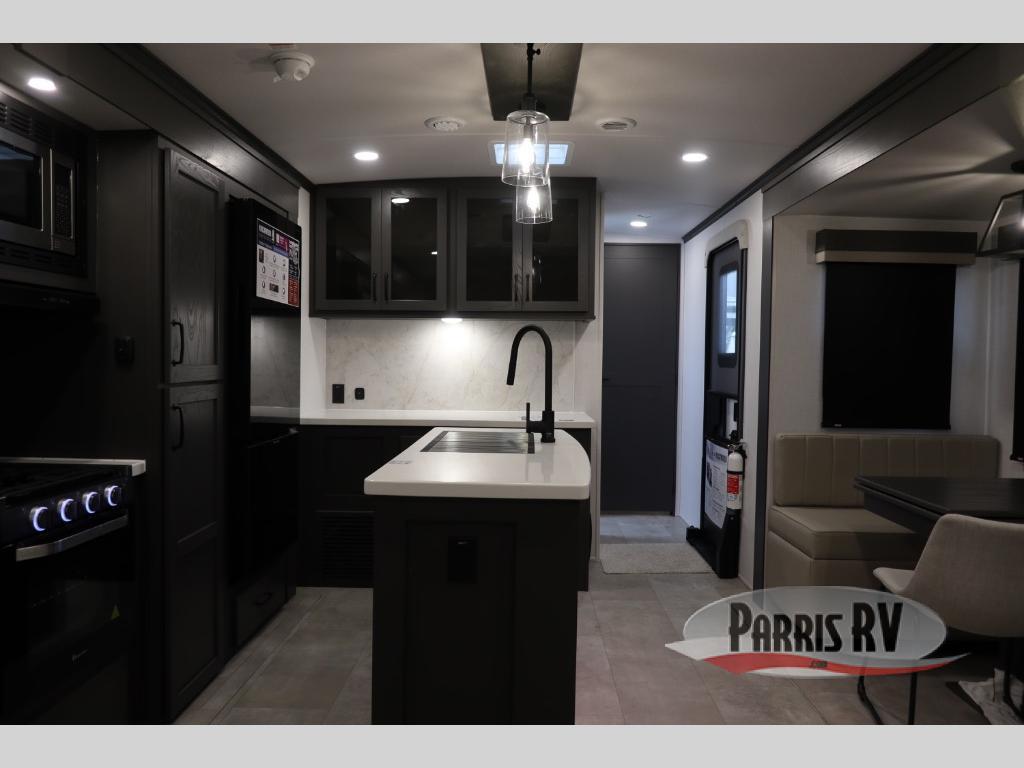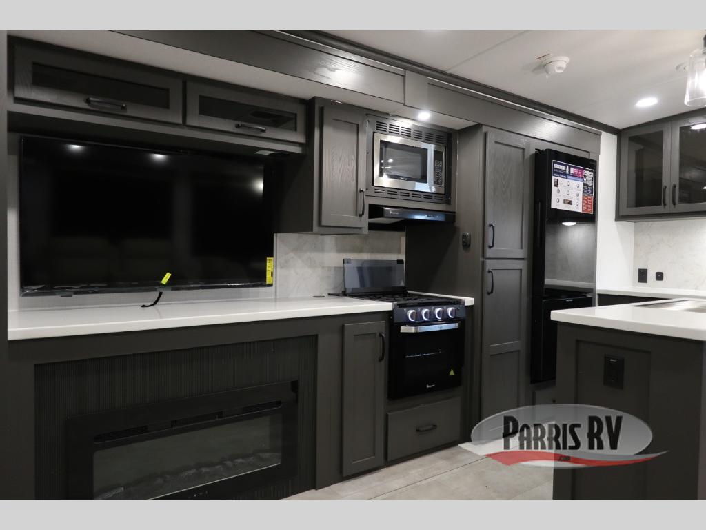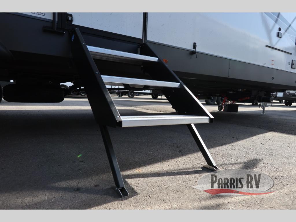 You're going to love the amount of natural light in this model with large windows in the back and the door side. The chef of the group will love the kitchen island, and there is tons of storage space for dishes, food, and knickknacks. The entertainment center with a Smart TV will allow you to watch movies at night, or you may just find yourselves outside under the two power awnings with LED lights. There is also an outside griddle here to cook pancakes in the morning. The king bed is sure to bring comfort, and you'll appreciate the large wardrobe to keep your clothes tidy. There is even washer and dryer prep if you choose to go full-time!